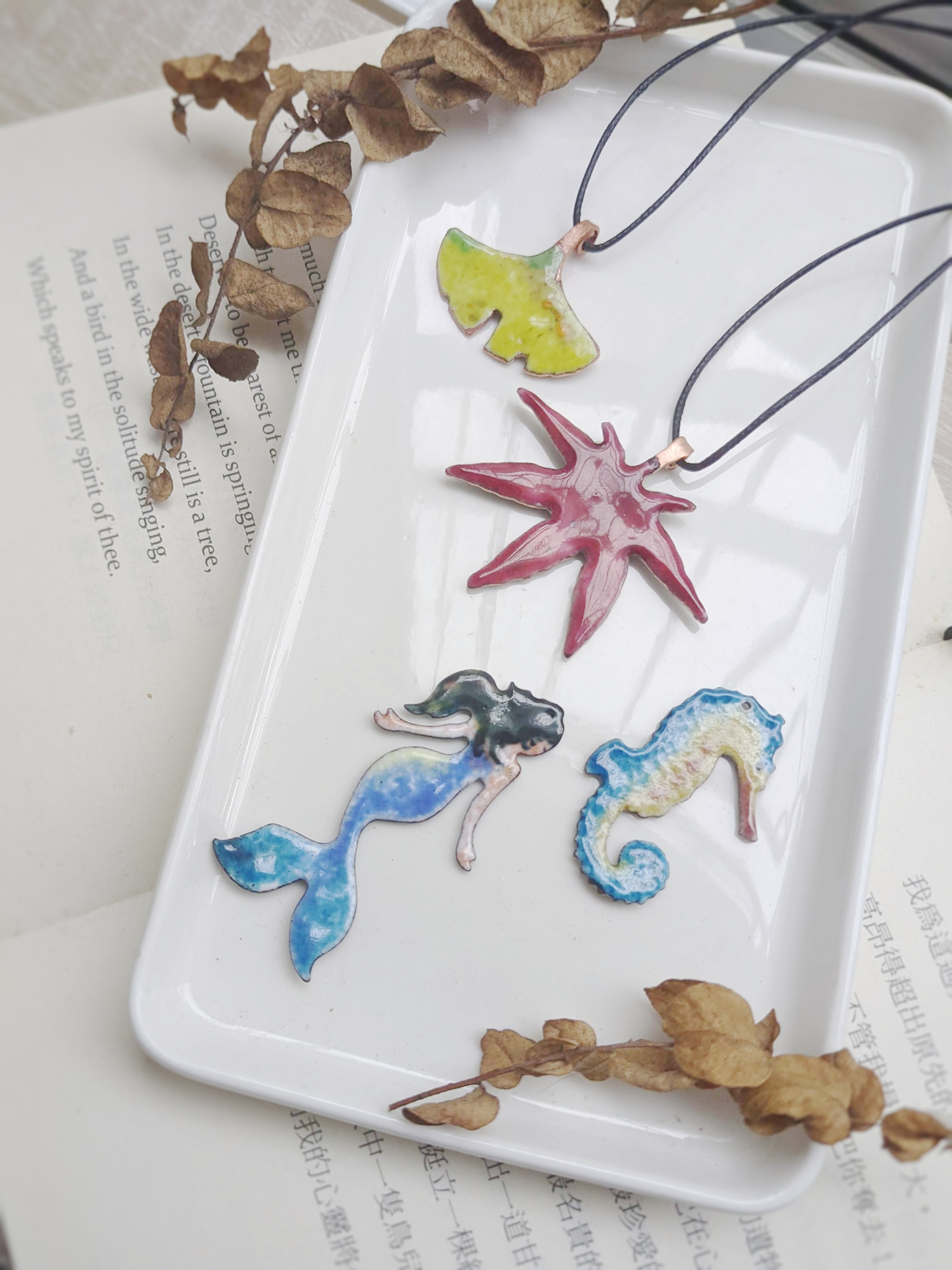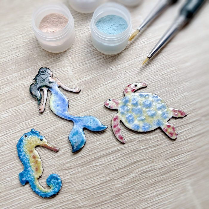 我們提供多款造型胎體與琺瑯色粉供選擇,如模擬夏日海中湛藍的生命氣息,亦可循著沾染入秋的葉子一起為它們作上色彩,或是只為親手為他做上一份美麗的禮物…