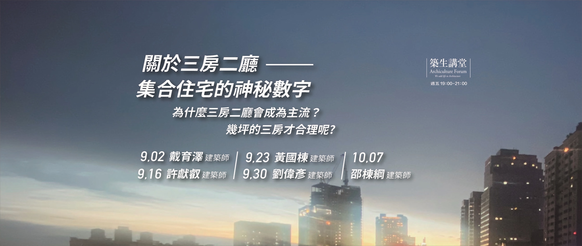 ● 第02堂 09/16(五)19:00-21:00 集合住宅設計 - 理想與現實間的平衡