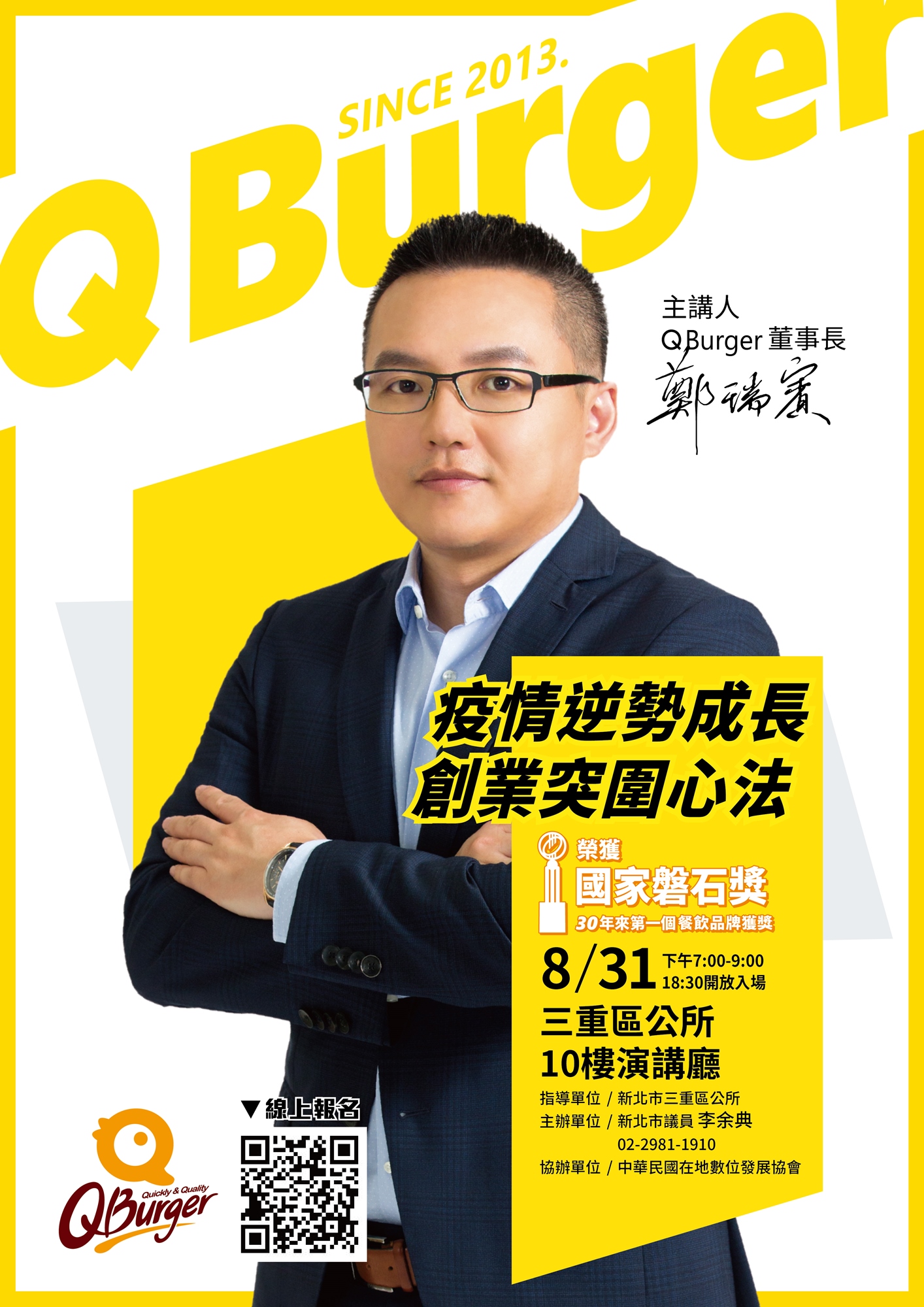 Q Burger董事長鄭瑞賓受邀蒞臨會場,分享「疫情逆勢成長