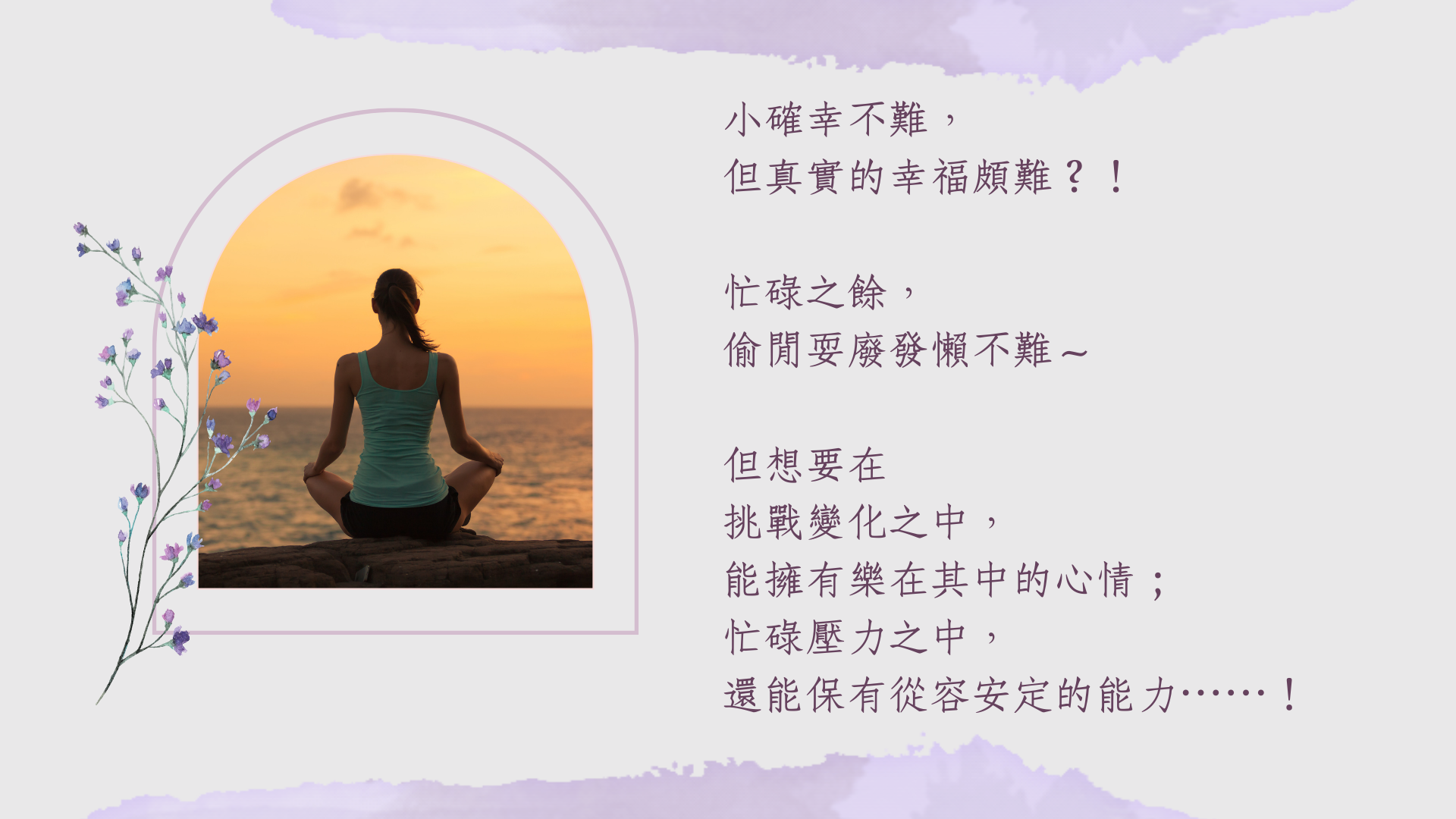 1.平時壓力大,忙碌但又不知為何而戰,想要學習「減壓」、「與壓力共處」的朋友。