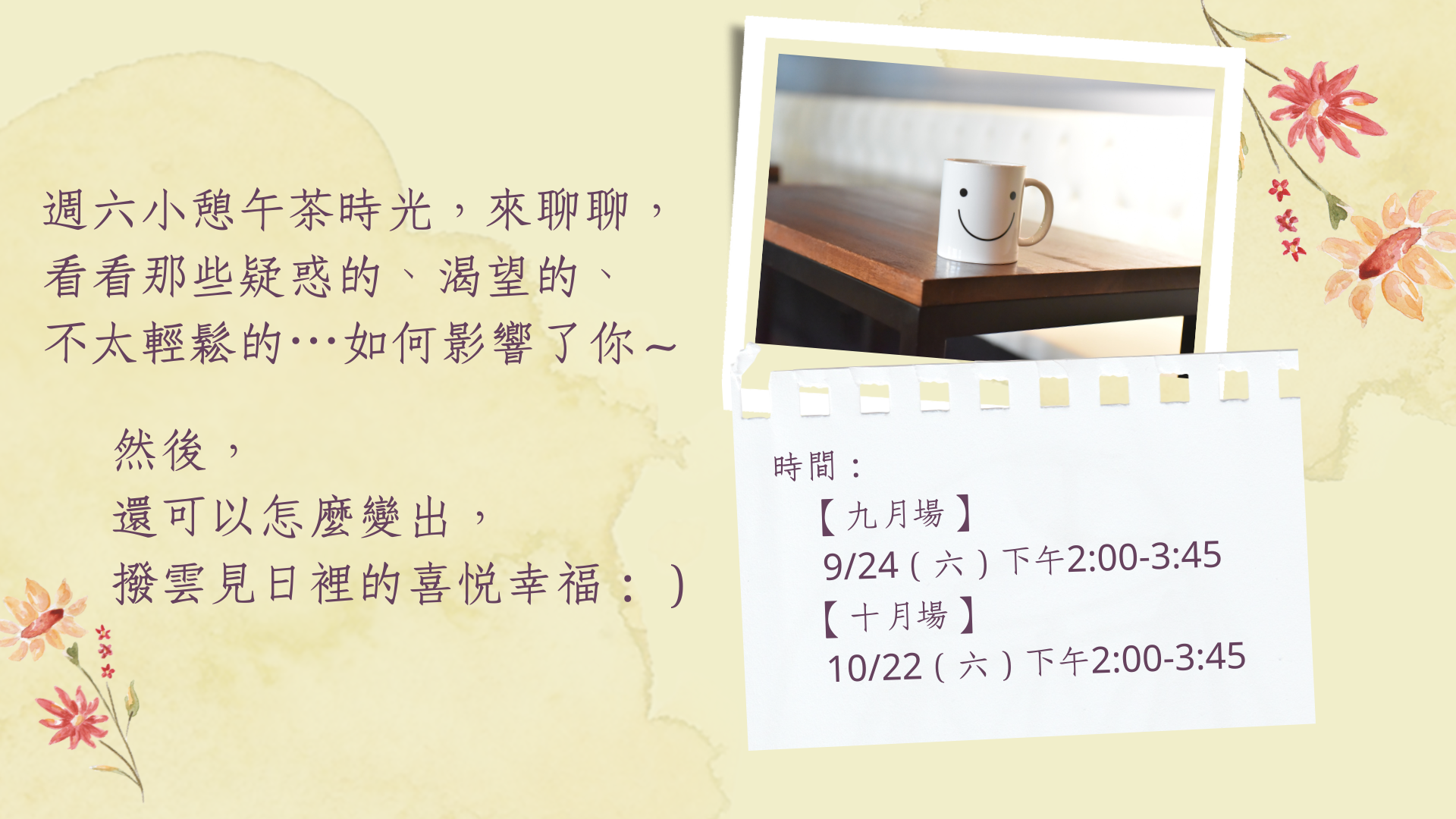 當年在徬徨無助、探索生命為何而來時,遇見了啟發我生命的教練後,開啟了我往內覺察、愛自己之身心靈探索成長之旅。