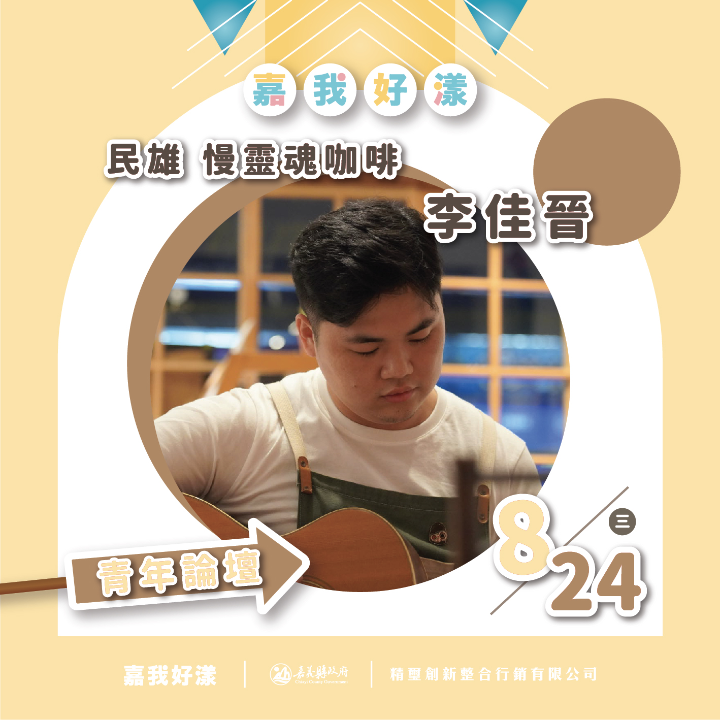 ▲Hi 我是慢靈魂咖啡的李佳晉 小李, 2017 之前在台南從事跟咖啡與音樂離不開關係的自由業,在台南念書與工作大約 6 年,台南遠看像一座內斂的古早味城市,近看則是許多有活力的年輕人接力傳遞文化的組成,身為有活力の年輕人我也想把這樣的感覺帶回嘉義,簡單來說就是想跟民雄一起成長,想跟家人一起生活。
