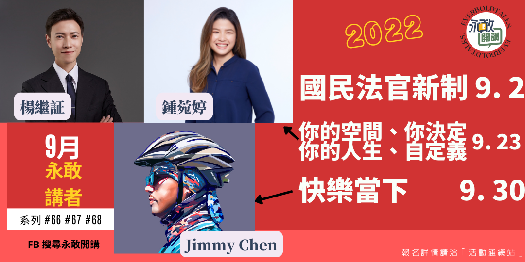 本場次免入場費無需報名,將於9/2 19:30準時上架永敢開講FB粉絲專頁