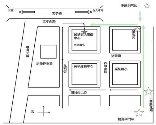 ※交通指引:萬華老人服務中心入口位於忠孝西路上,一樓門口有無障礙坡道 —是獨立的入口,請勿走入國宅內喔!