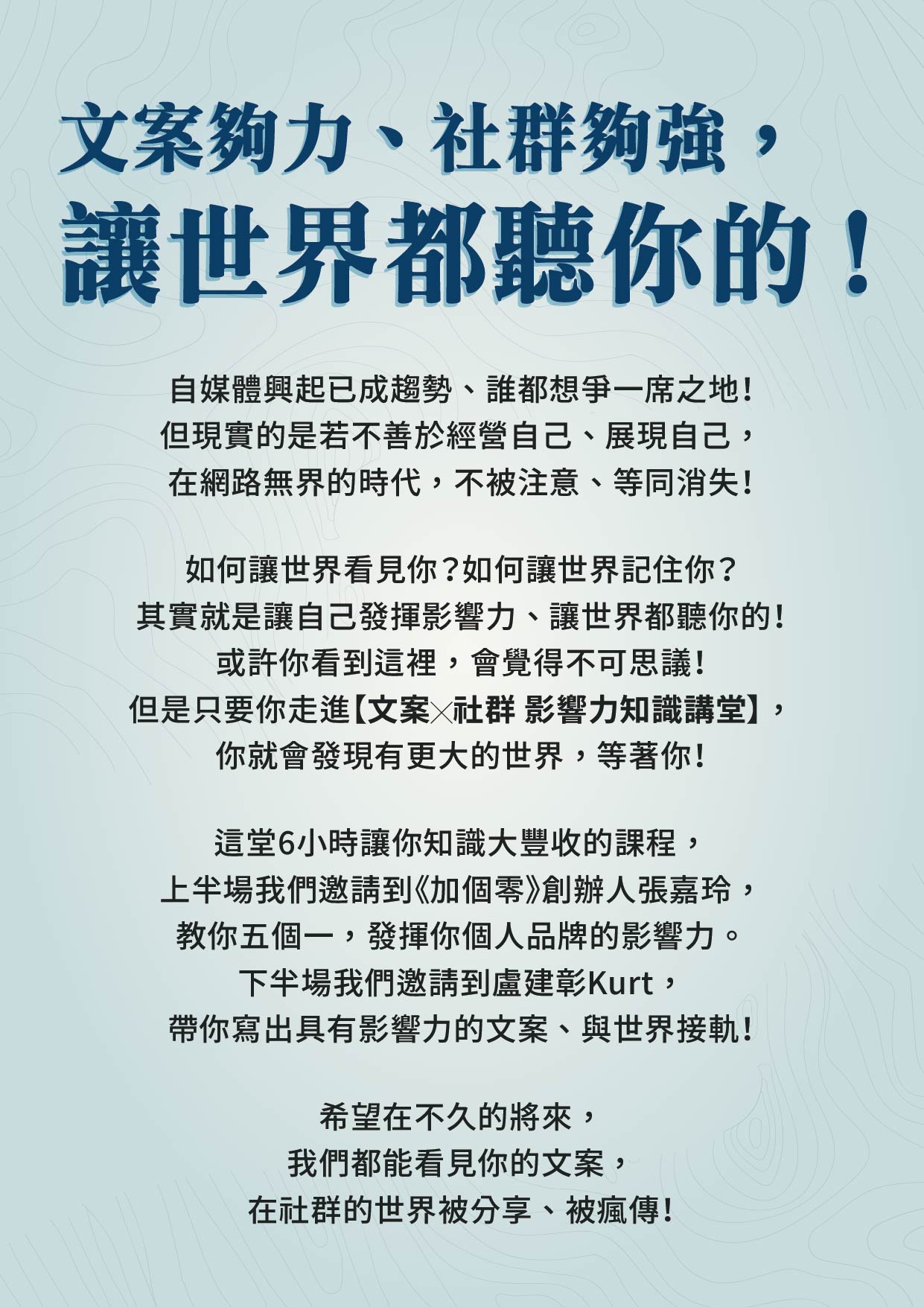 但是只要你走進【文案╳社群 影響力知識講堂】,