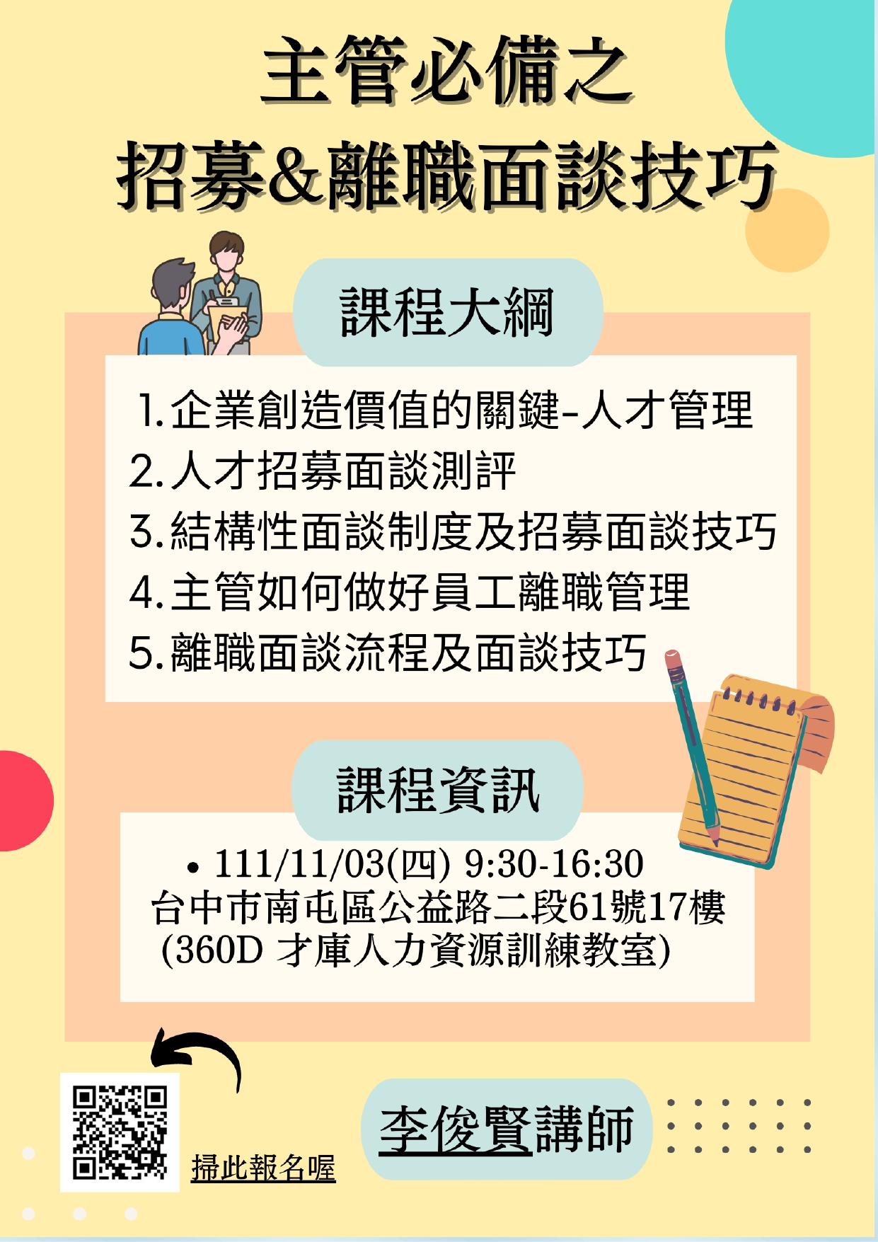 【上課地點】:台中市南屯區公益路二段61號17樓 ---才庫人力資源教室(華爾街大樓)