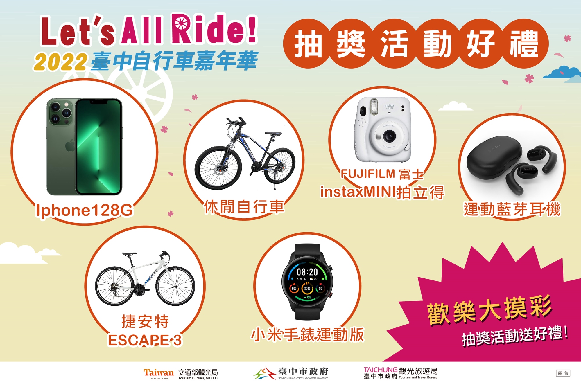 3️⃣「活動送很大!!」凡參加2022臺中自行車嘉年華活動完成騎乘,完賽即可兌換超值好禮!