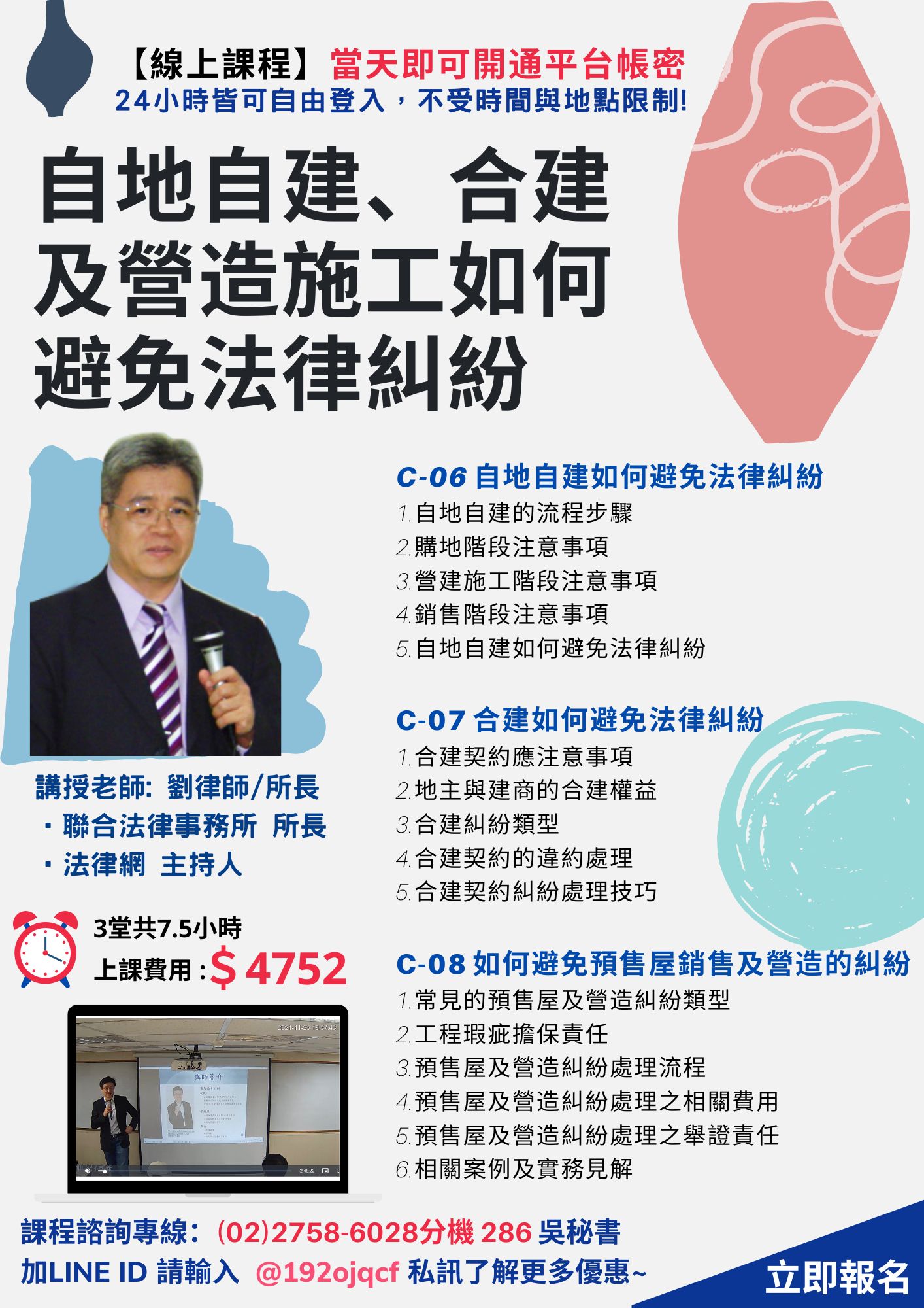 【線上錄影課程】營建業法律實戰3堂錄影組合包,線上防疫價4752元!完款當天立即開通!