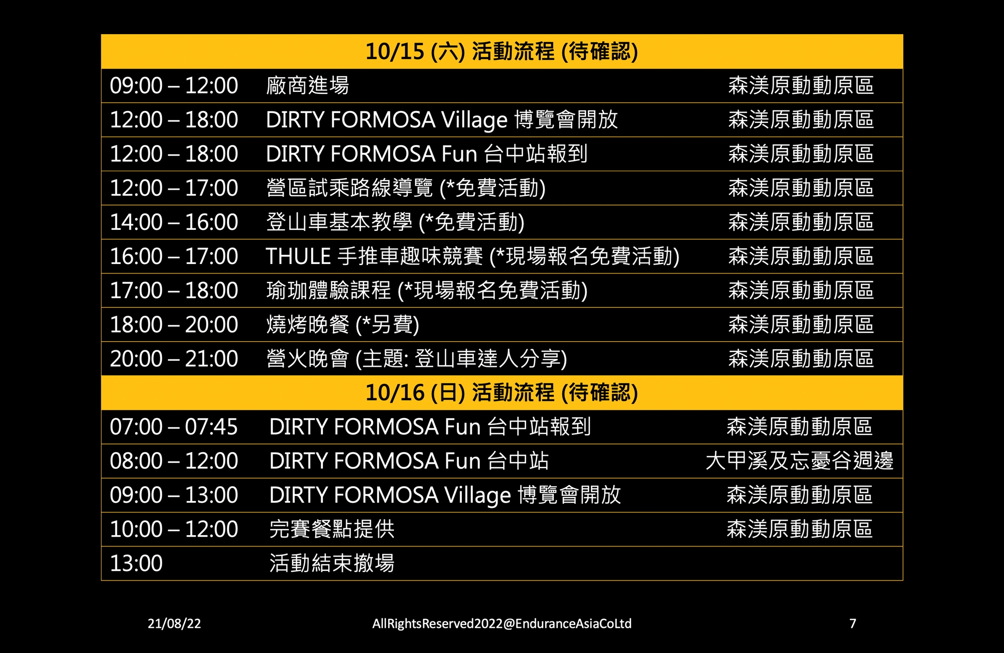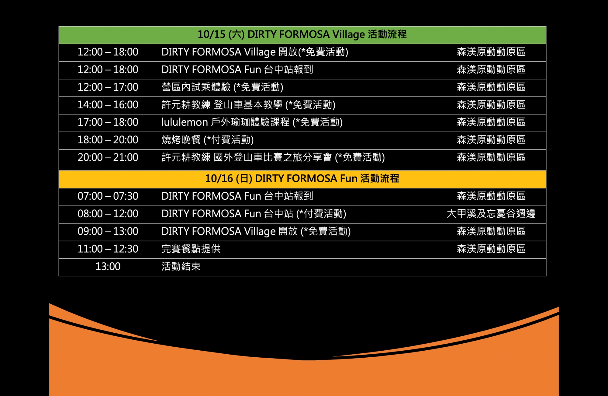 11. 參加者需於10/15日在DIRTY FROMOSA Village 博覽會當天報到(可以接受代辦報到)。