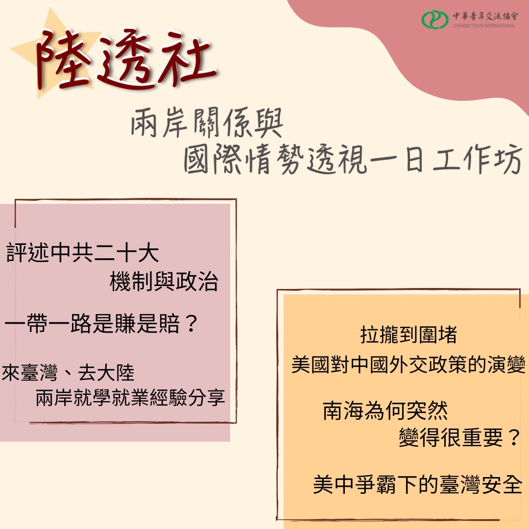 課程將帶領青年學生啟發瞭解中美兩國競爭下的國際情勢變化、東南亞情勢與南海爭端
