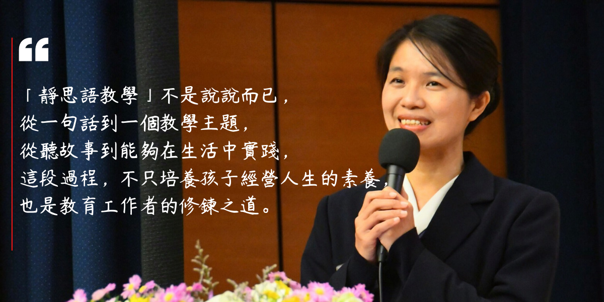 因此自正式成為老師到現在,她從未中斷品格教育,也長期運用品格教育;透過「靜思語教學」影響了學生,甚至是家長和她自己!