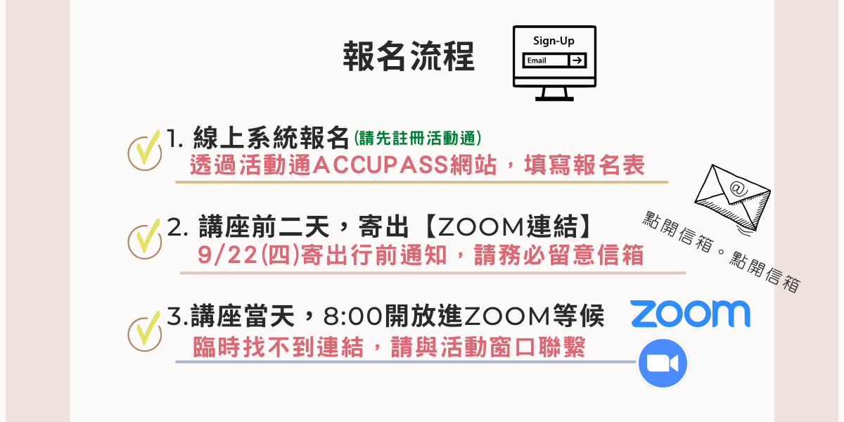 (二)此為線上視訊講座,「視訊鏡頭、耳機及麥克風」自備妥當。