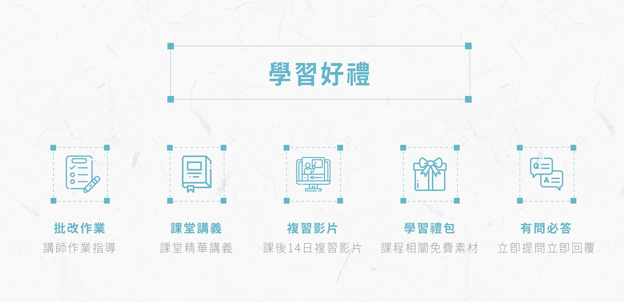 - 課後提供每堂課堂精華講義與相關影片14日期限,可複習與內化課堂所學