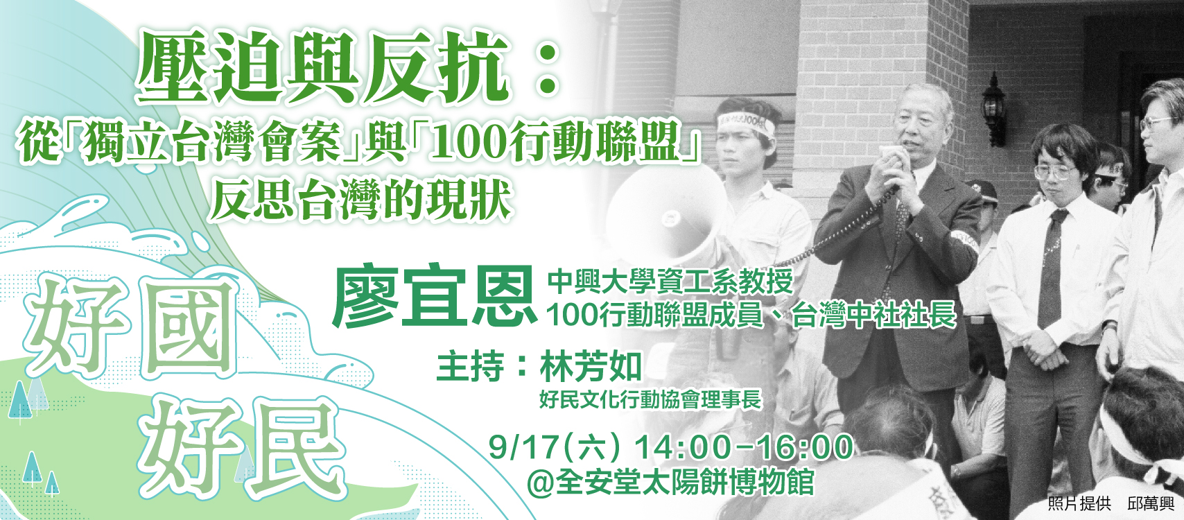 【好國好民講座】壓迫與反抗:從「獨立台灣會案」與「100行動聯盟」反思台灣的現狀