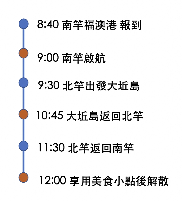 每梯次開放十位馬祖居民免費參加,入選名額出發前一週以電子郵件通知,未入選不另行通知活動為一日行程,提供參與人員自南竿福澳港至淨灘地點之來回接駁服務,並提供中餐 淨灘小禮物:完成淨灘活動之居民,可獲得限量馬祖向海致敬防水背包 。