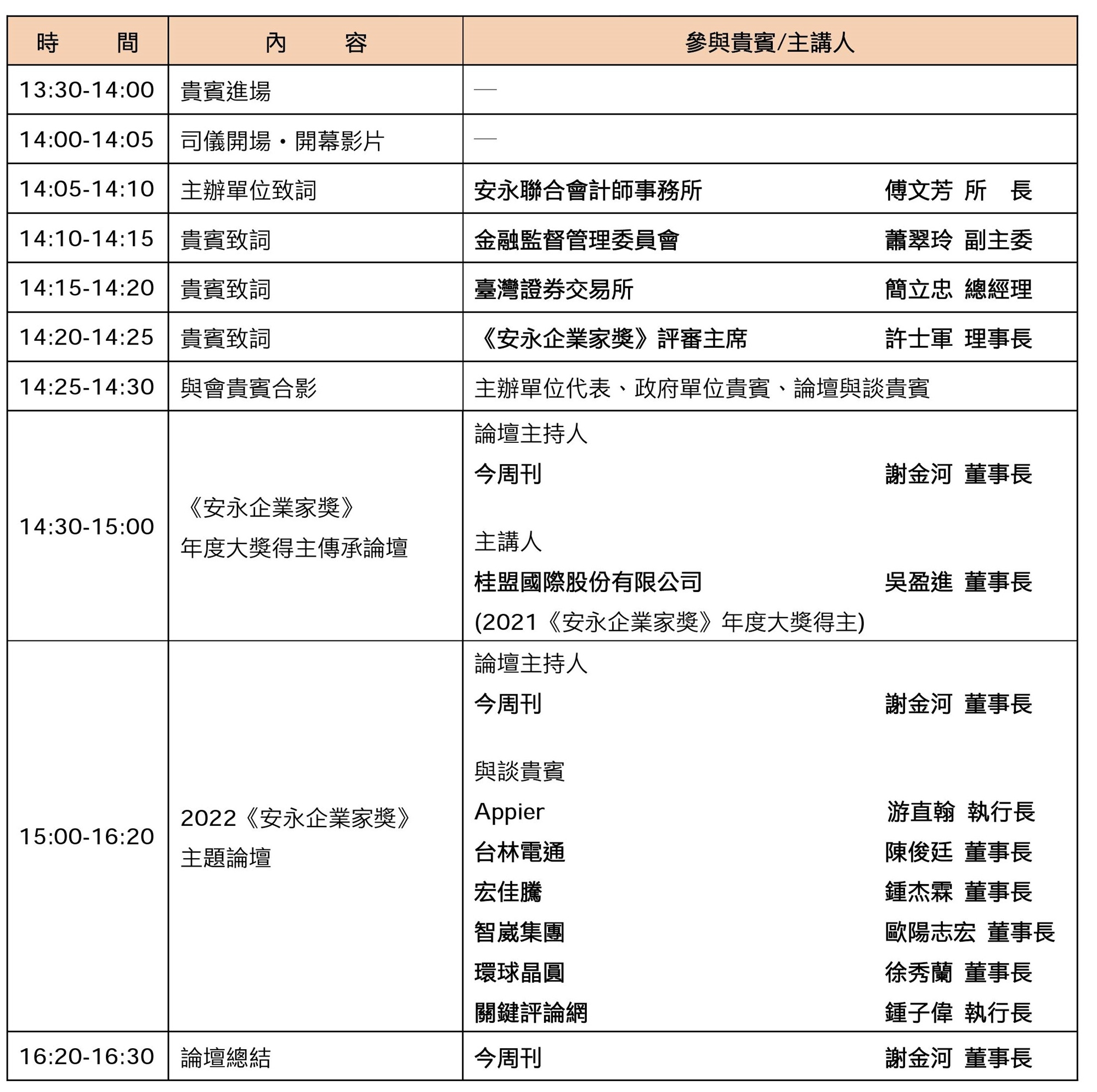 《安永企業家獎》是全球第一個表彰優秀企業家的國際性獎項,表揚以智慧和毅力創辦並成功經營企業的企業家,在台灣今年已邁向第十八年。企業家將於本次論壇分享如何在高速變化的世界中扎下基礎,穩中求進、鴻圖擘劃,以高瞻遠矚的宏觀理念,持續改變人類生活!