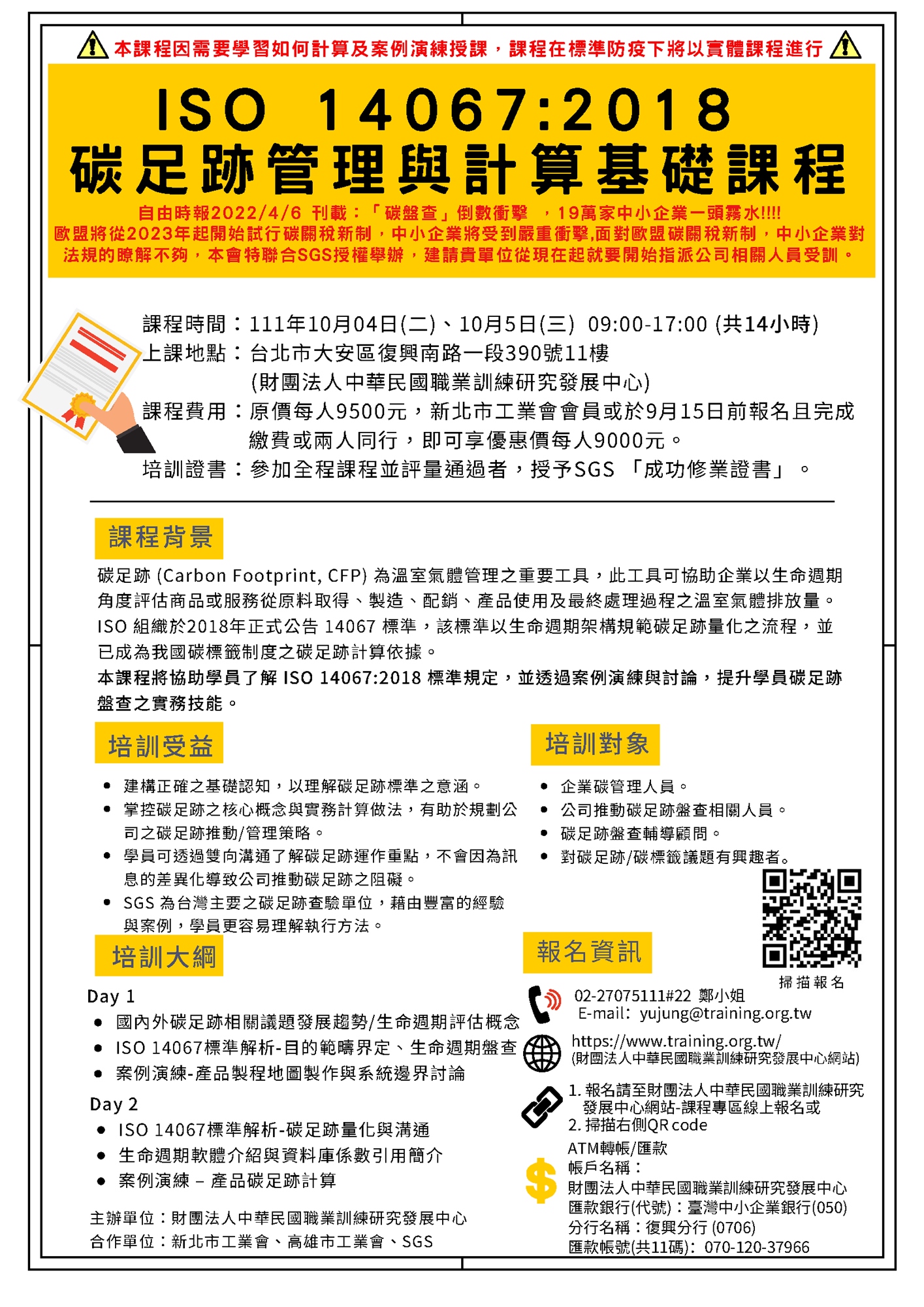 課程名稱:ISO 14067:2018碳足跡管理與計算基礎課程