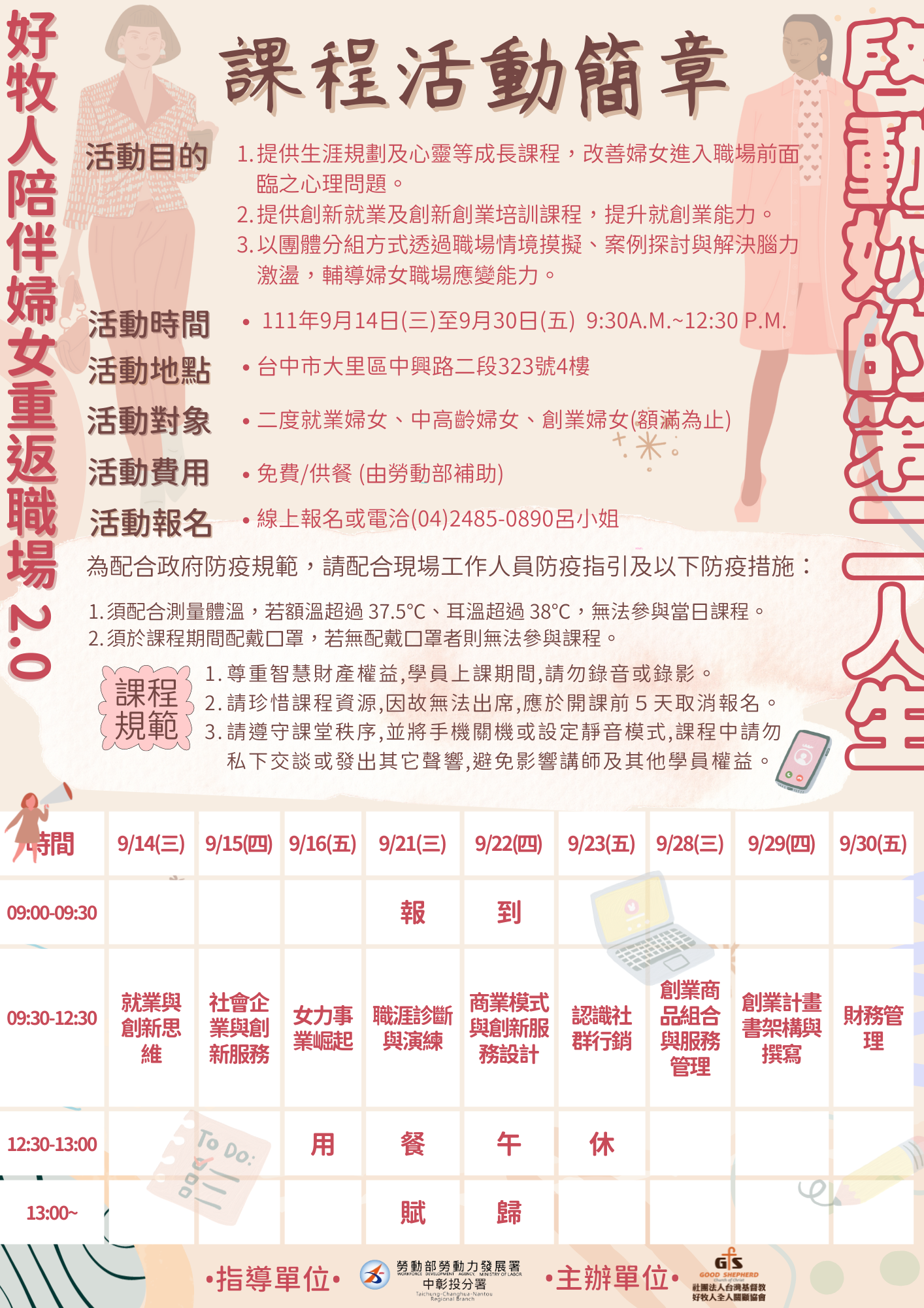 ✨活動對象:二度就業婦女、中高齡婦女、創業婦女