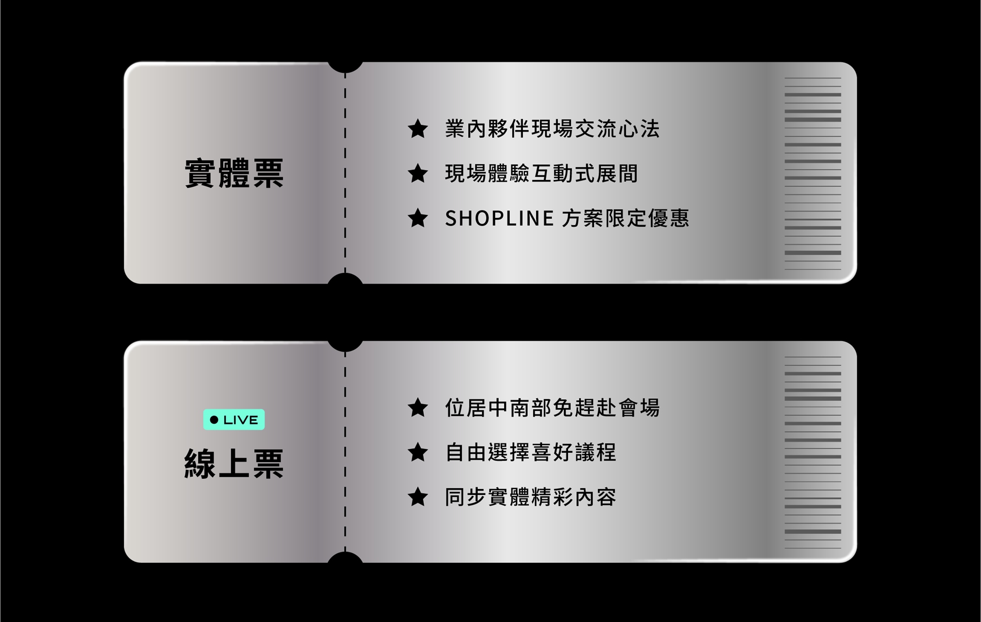 2. 活動「實體票」限額 120 名,憑報名成功確認信、編號、手機入場,活動現場不提供劃位,請及早入場就座。