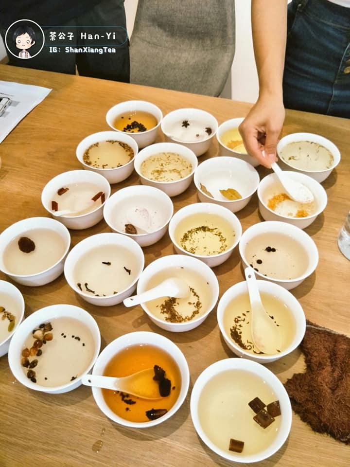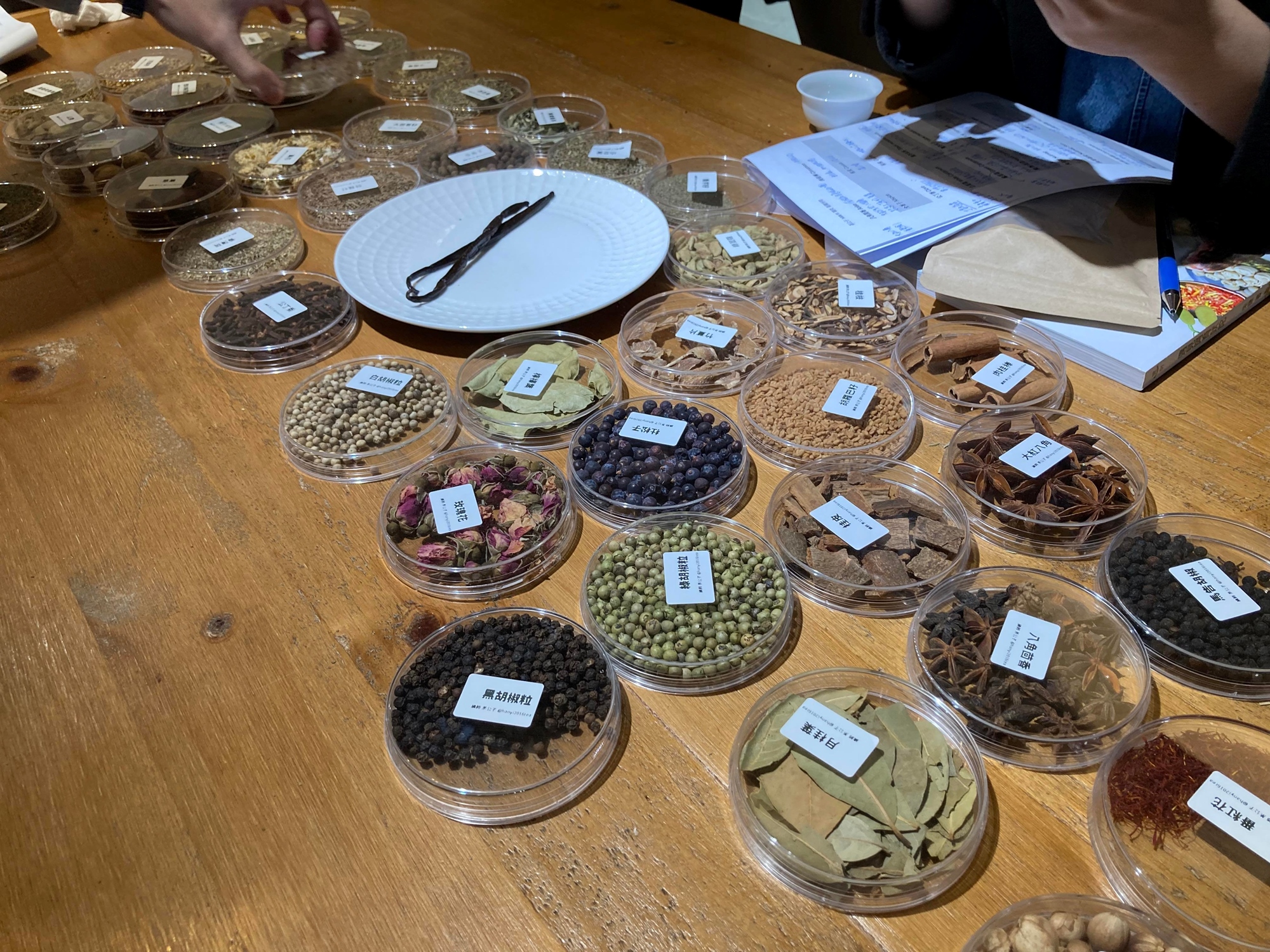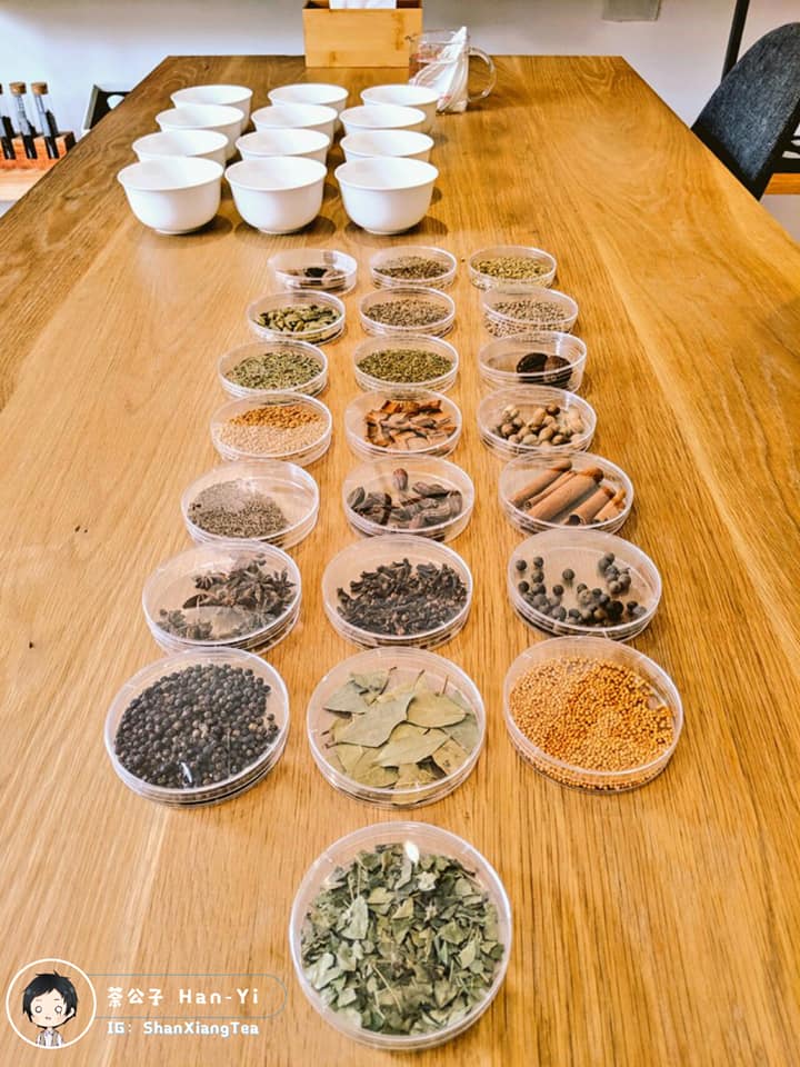 臺灣茶具有不同的特色,藉由發酵度的不同,在部分發酵茶領域產生不同香氣,而這麼多的香氣,該用什麼來形容呢?試試看認識香料吧!約30款香料、花、果、草本、茶,培養嗅覺、味覺的感知極限,講師會一步步依照香料與香草特性,引領老學員認識不一樣的草本茶文化。