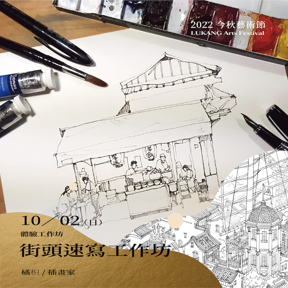 時間流轉,每一秒世界都在改變,速寫有趣的地方就是透過觀察,同一件事在每個人筆下都出現不一樣的風采。本次工作坊邀請《洛津女子插畫展》插畫家橘枳,練習運用隨性的筆觸,記錄下鹿港街上的生活風景。