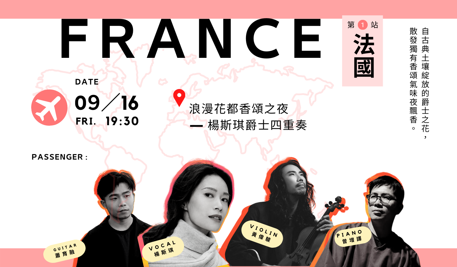 ✿西歐,法國 ╳ 浪漫花都香頌之夜—楊斯琪爵士四重奏✿自古典土壤綻放的爵士之花,散發獨有香頌氣味夜飄香。