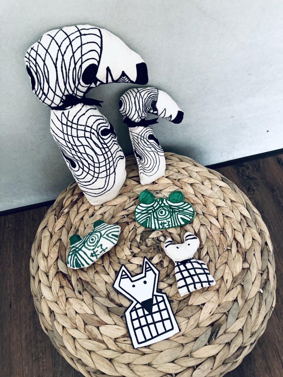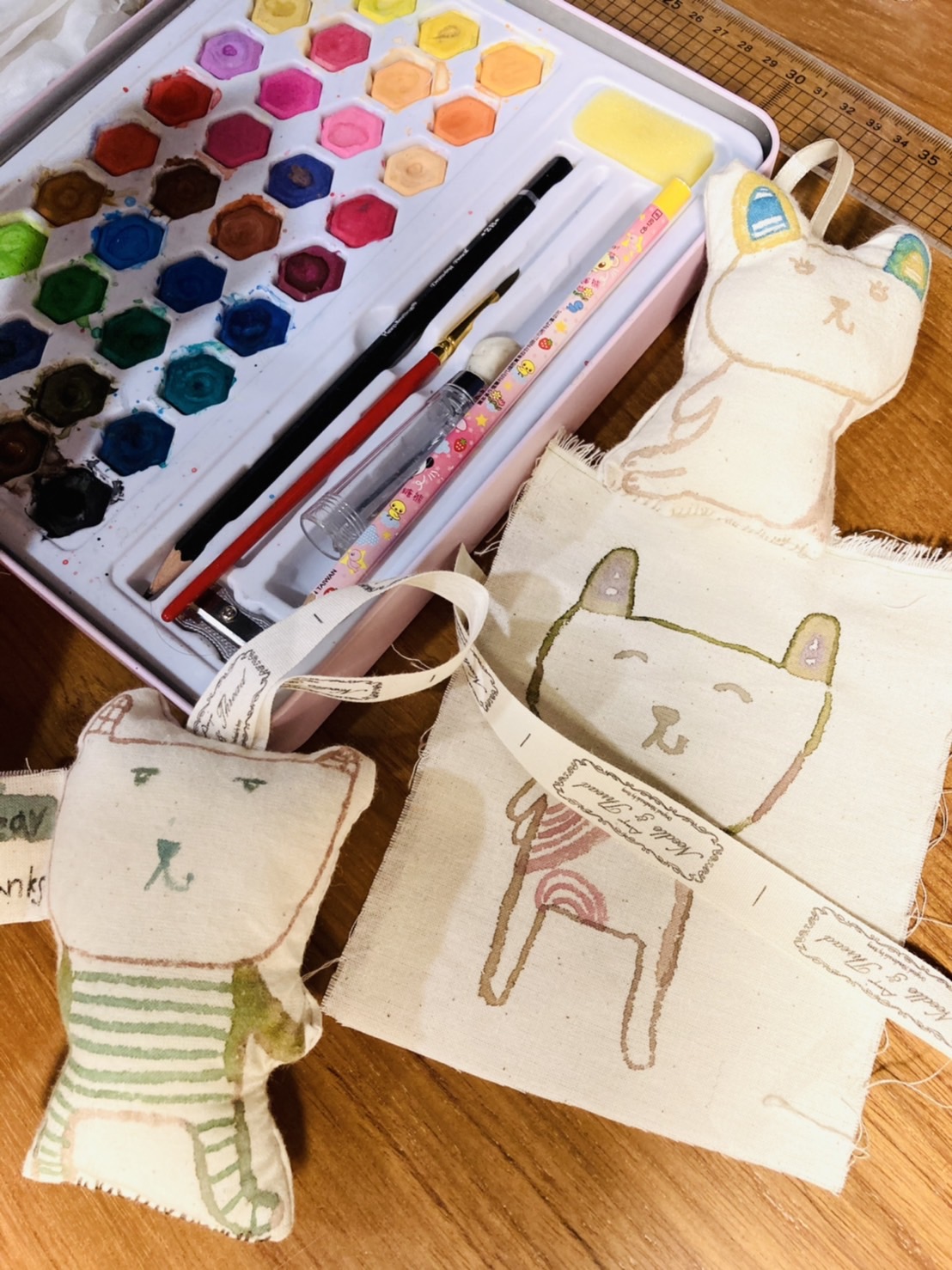 在常常需要關在家裡很多日子的疫情時代,無法外出的母親,利用了家裡剩餘的布料,copy女兒的畫作,替隔離中的女兒製作了屬於她的玩偶⋯
