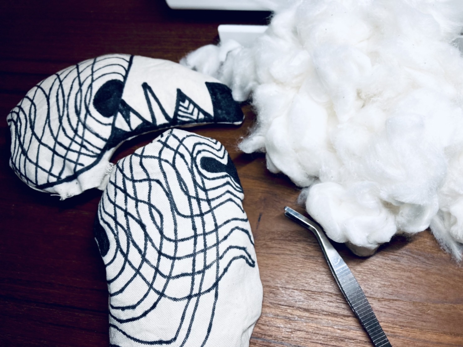 3. 填充棉花:修剪多餘的邊角布,翻轉至正面,從預留孔洞填充棉花