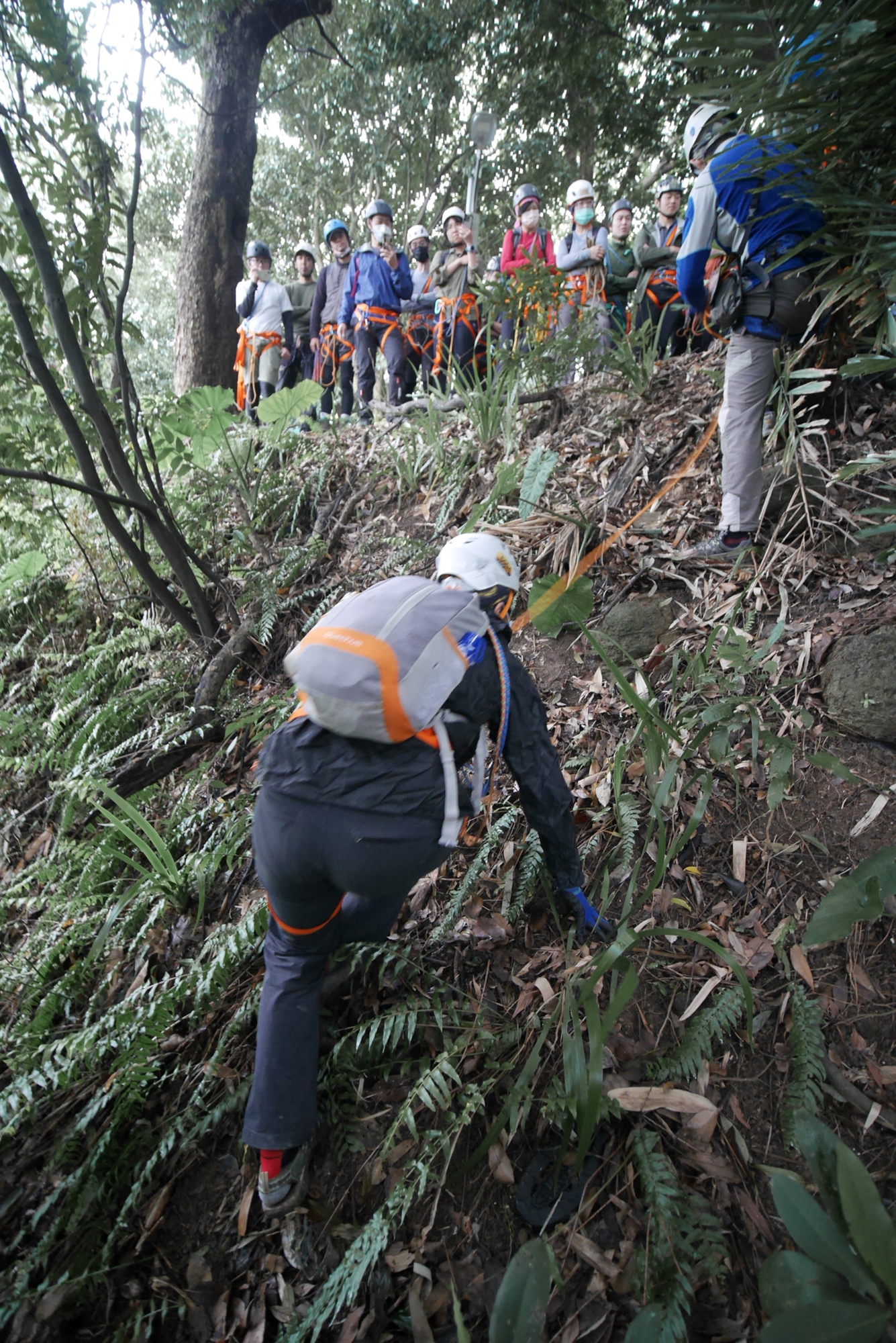 通過斷崖峭壁時,除了使用現場有的輔助繩之外,若是自己也能具備判斷現場繩索及固定點的安全性、具備繩索系統架設的能力,我們就更能掌握過地形的風險。必要時也能扮演協助隊友的腳色,提升整體登山的安全性