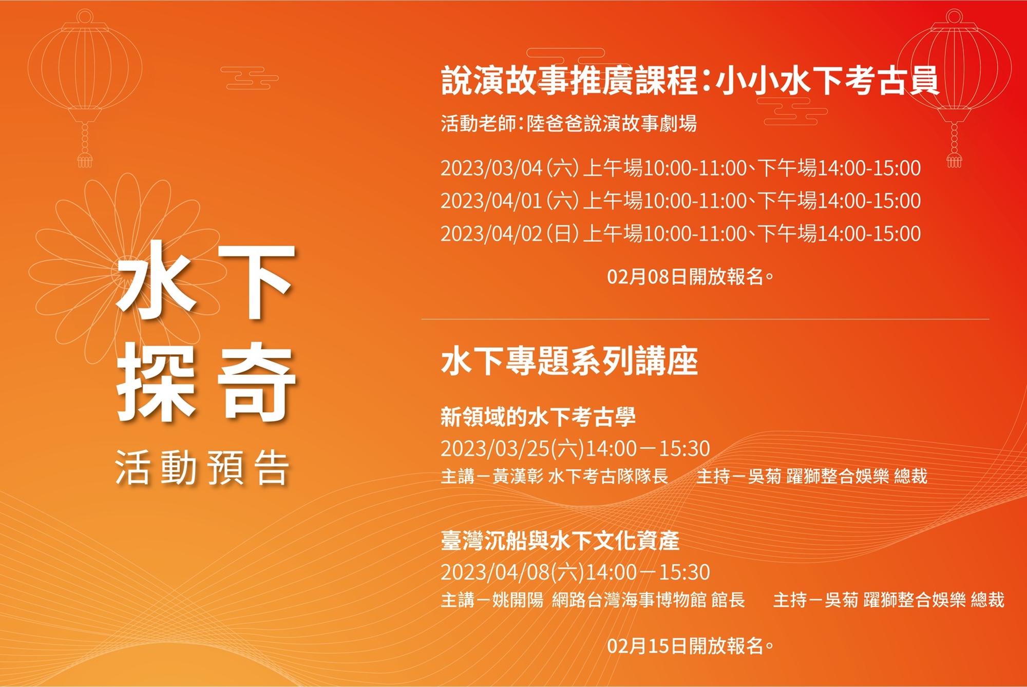 *講座介紹*水下探奇以水下文化資產為題,舉辦水下專題系列講座,探索水下文資在各時代中的樣貌與脈絡。