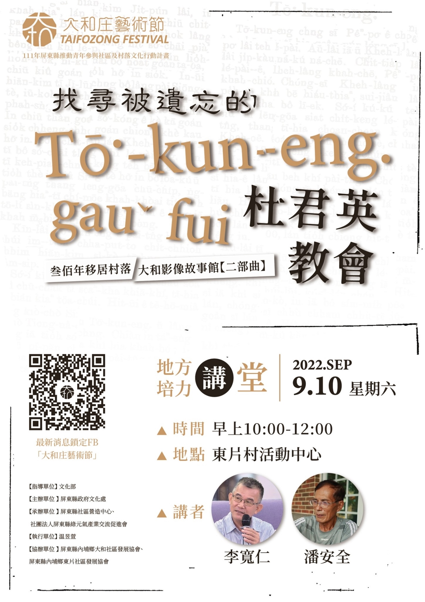 這次我們將帶您一同回顧這段英國宣教士 #李庥牧師 ,如何在困難的環境中學習客語和杜君英居民傳揚福音,及當地李家、潘家分別在客家與平埔家族中扮演著與杜君英教會之間緊密關聯的故事。