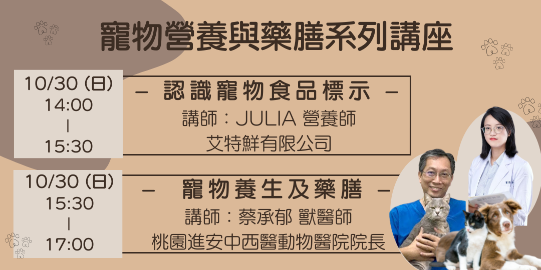 – 寵 物 營 養 與 藥 膳 系 列 講 座 –