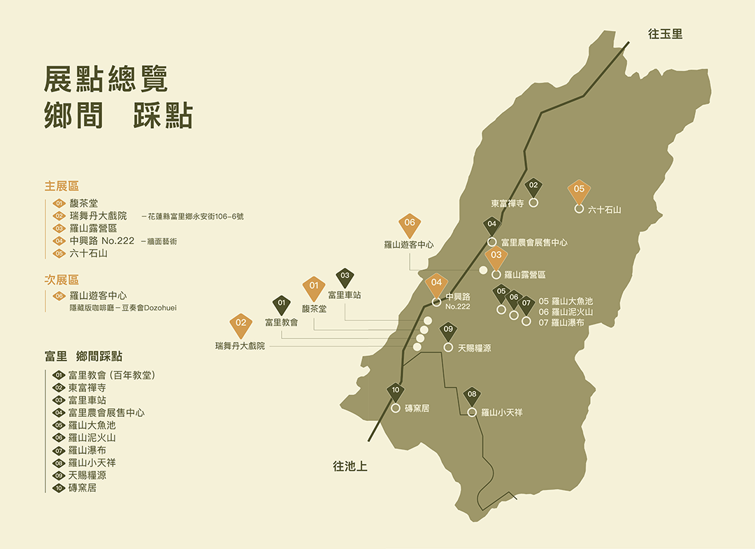 創辦人對家鄉的期望催化了本展覽的誕生,一趟以富里在地文化的創作氣味為主軸,具有獨創性的藝術之旅就此展開。