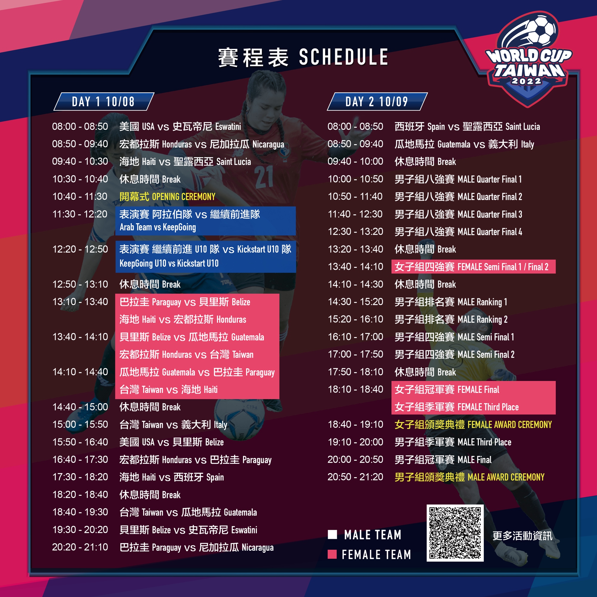 2 Full days of football games and food from all over the world! Come to enjoy the music, the cultural performances and the high-tech broadcast we have prepared for you. This Double-Tenth holiday, the World Cup Taiwan 2022 is COMING HOME!