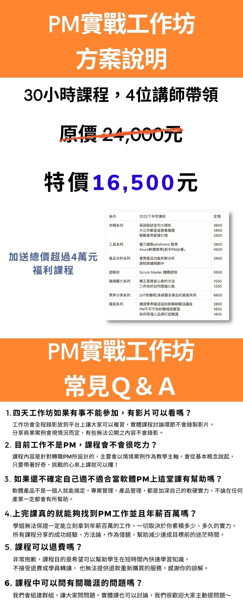 PM實戰工作坊:非技術背景者轉職軟體PM課程