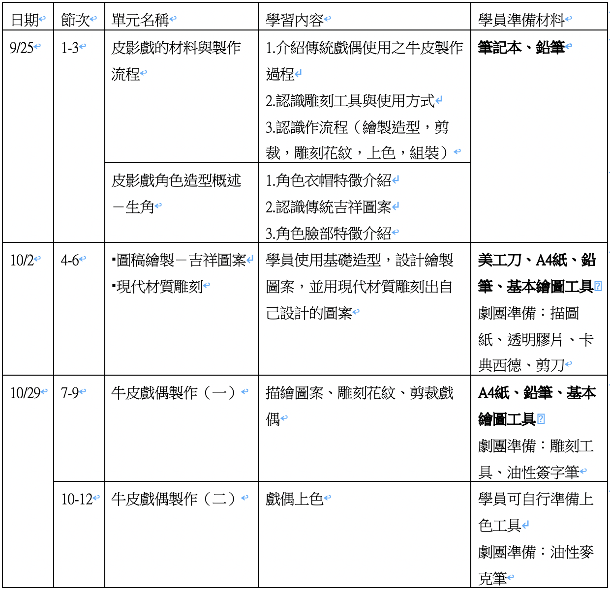•✰課程全勤者-劇團贈與一份精美皮影文創禮品✰•