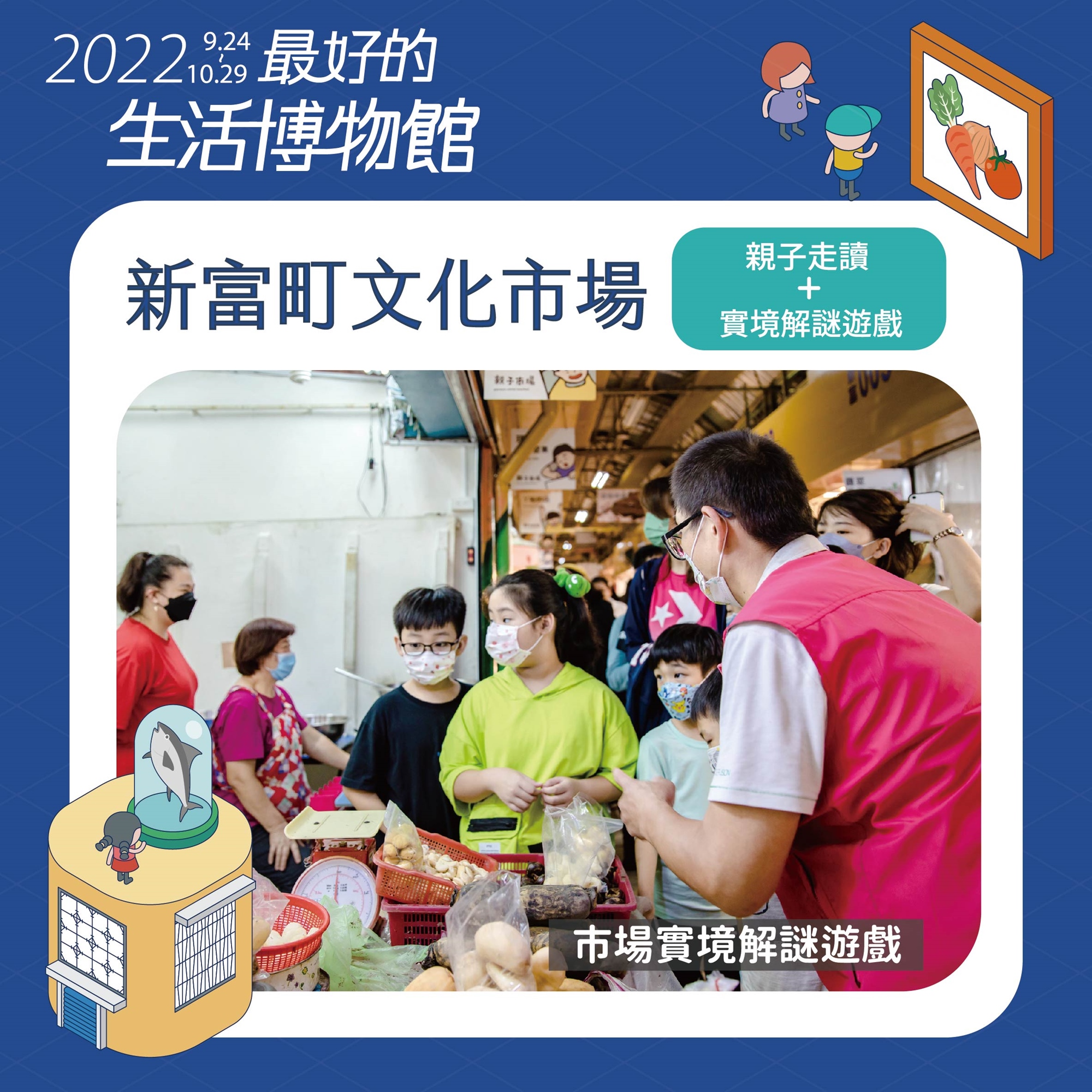 實境解謎體驗與 東三水市場、新富市場 合作,讓親子都可以體驗深入市場的解謎遊戲喔!