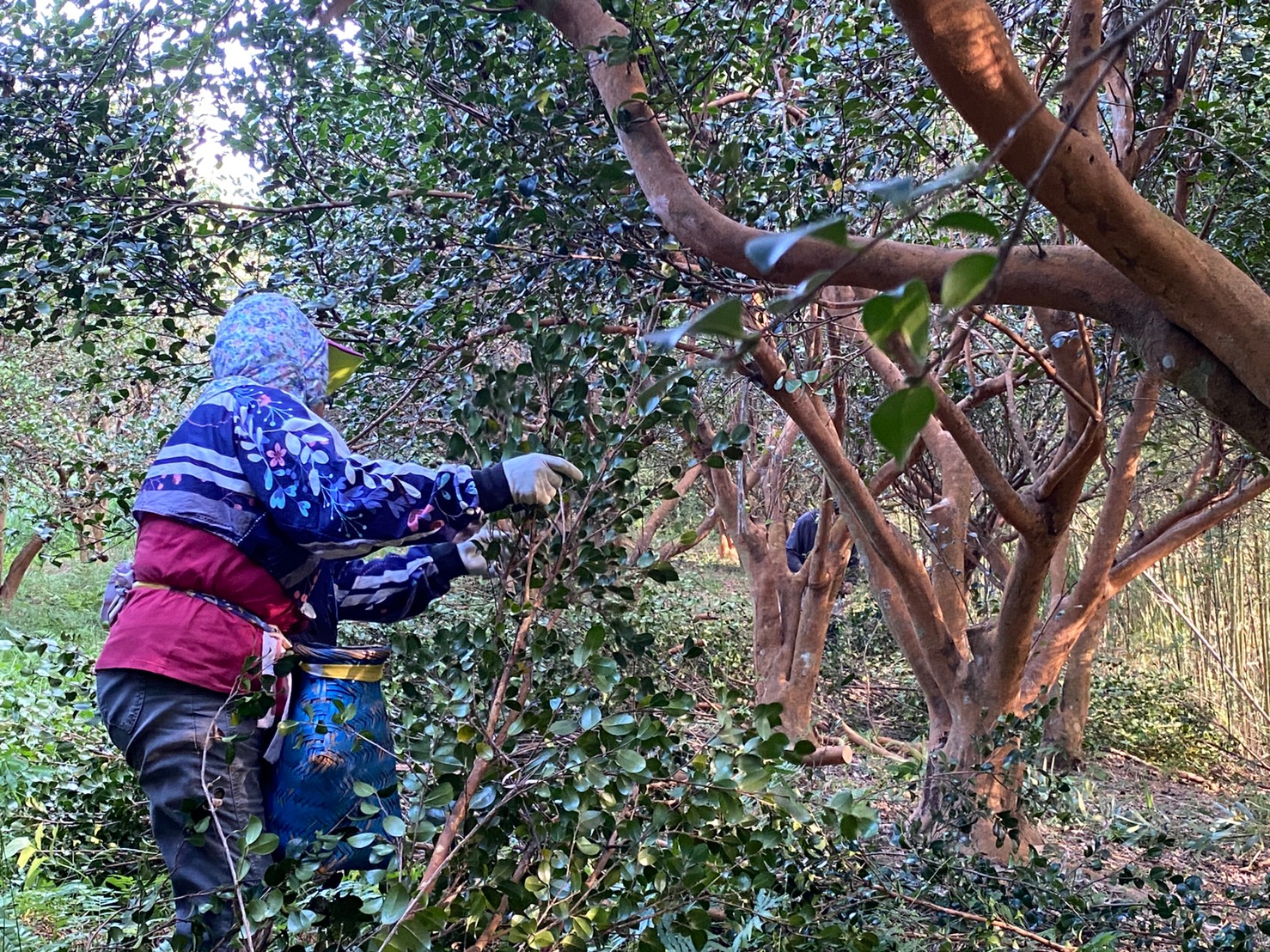 孕育一年的苦茶果實,每年霜降前後開始採收