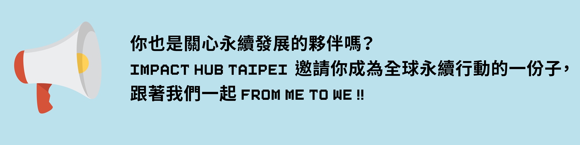 而在本場活動中,Impact Hub Taipei 將以 「私部門成為推動永續發展的助力」為題,我們希望能夠透過本次座談,讓來自各國的座談參與者及 Impact Hubs ,看見臺灣私部門如何透過「 SDG 17 促進目標的夥伴關係」來實踐企業的永續行動 ,將企業的影響力擴大與在地化!