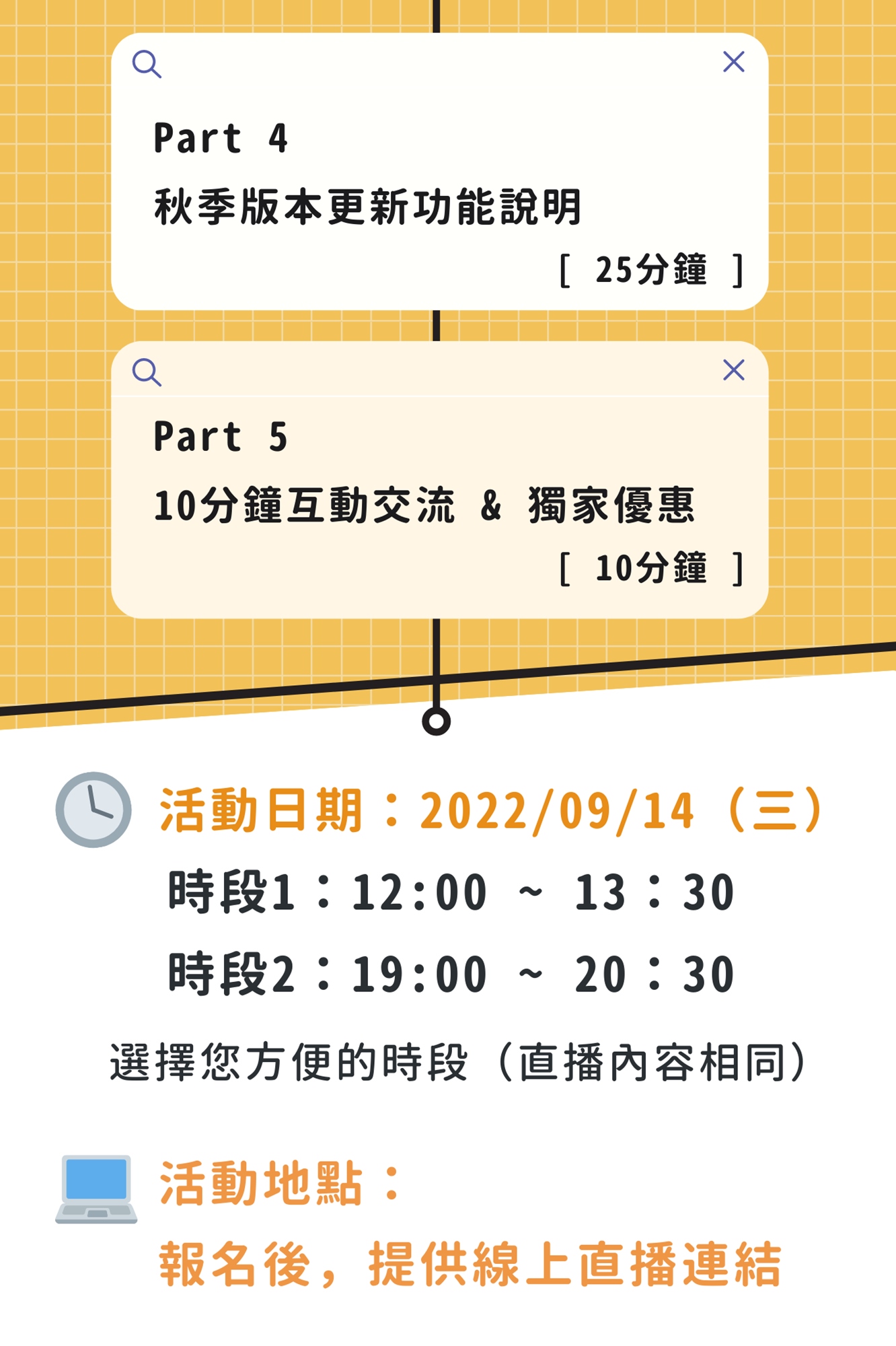 兩個時段的直播內容相同,請報名您方便的時段!