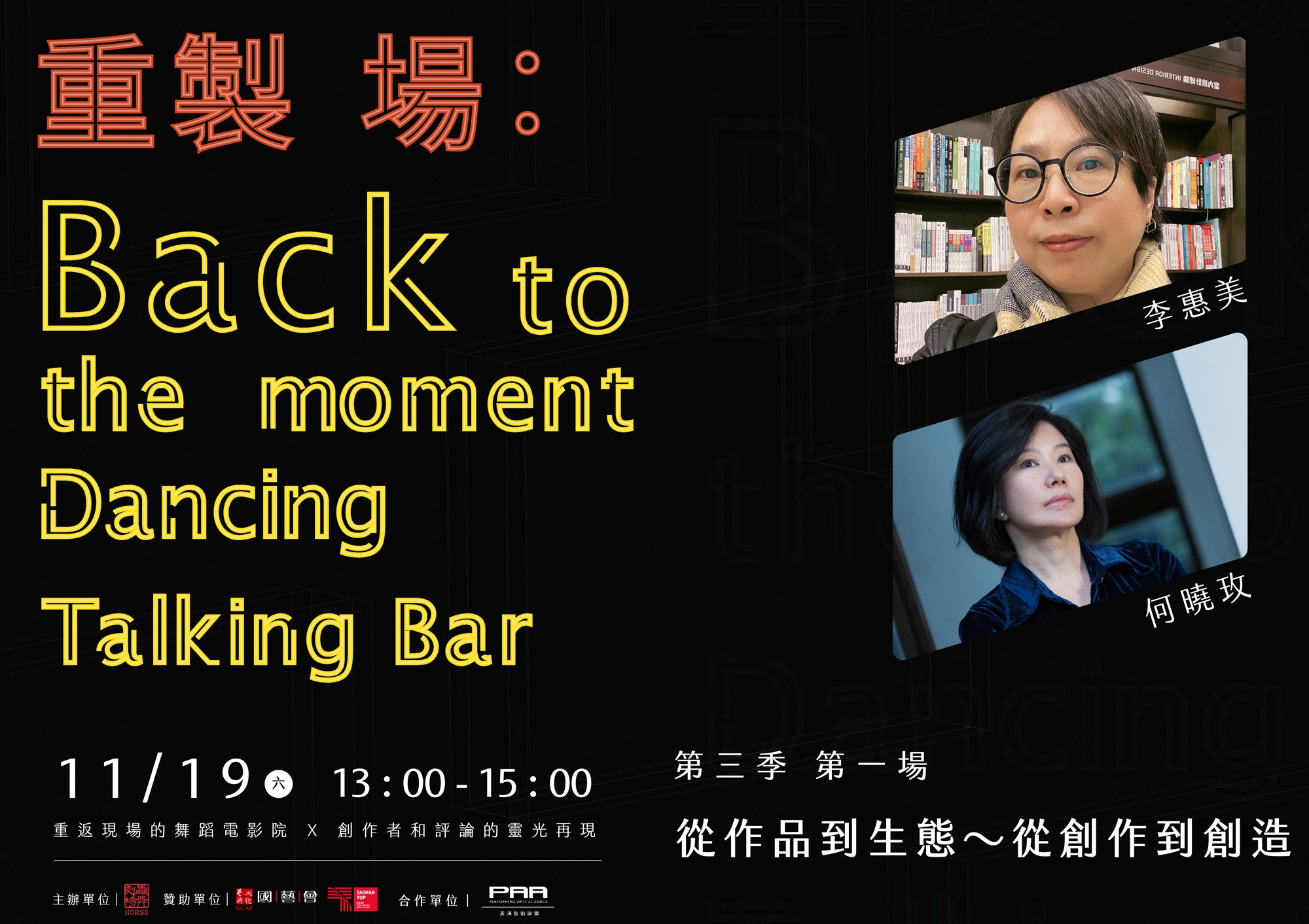 李惠美女士將與四位不同崗位的資深藝術工作者深入對談——驫舞劇場團長蘇威嘉、何曉玫 MeimageDance 藝術總監何曉玫、獨立製作人孫平、戲劇導演與評論傅裕惠,匯聚他們各自走過的藝術來時路,從不同觀點聚焦臺灣演出型態縮影,帶著身為觀眾的我們,在臺灣劇場發展的座標上點狀式探索。
