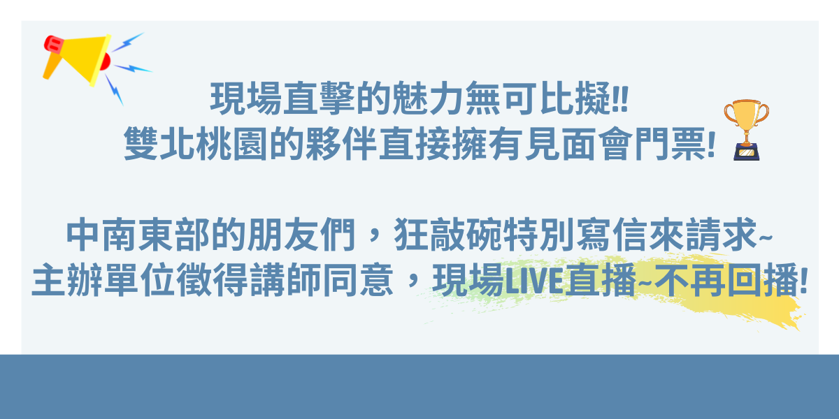 • 直播連結於10/14(五)寄至信箱,請務必留意