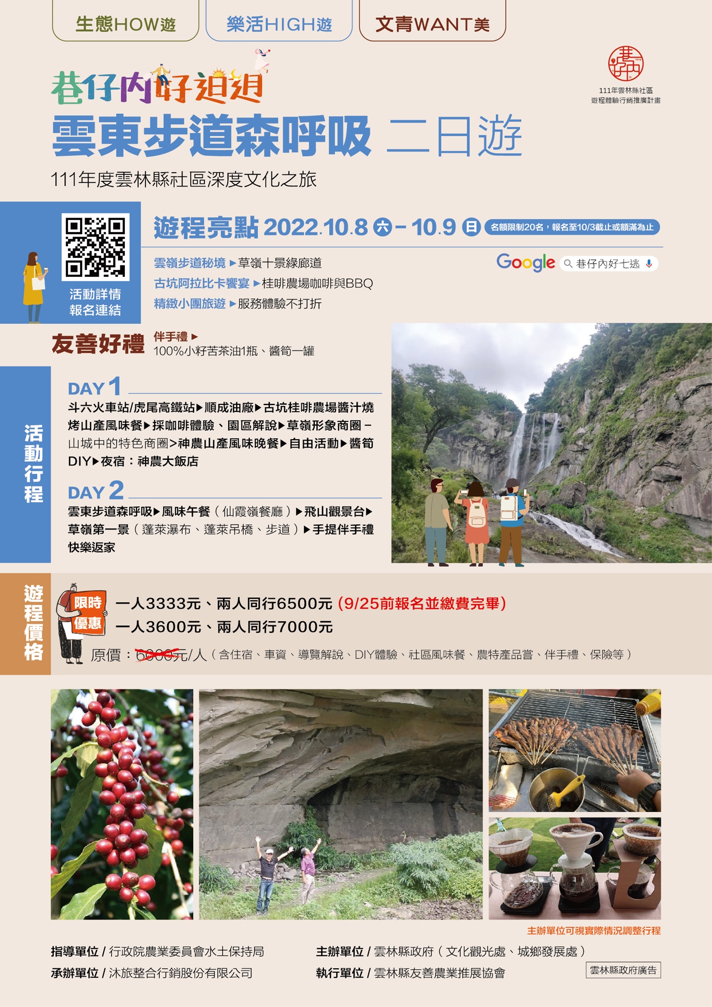 【111年度雲林縣社區深度文化之旅】「雲東步道森呼吸」(二日遊)