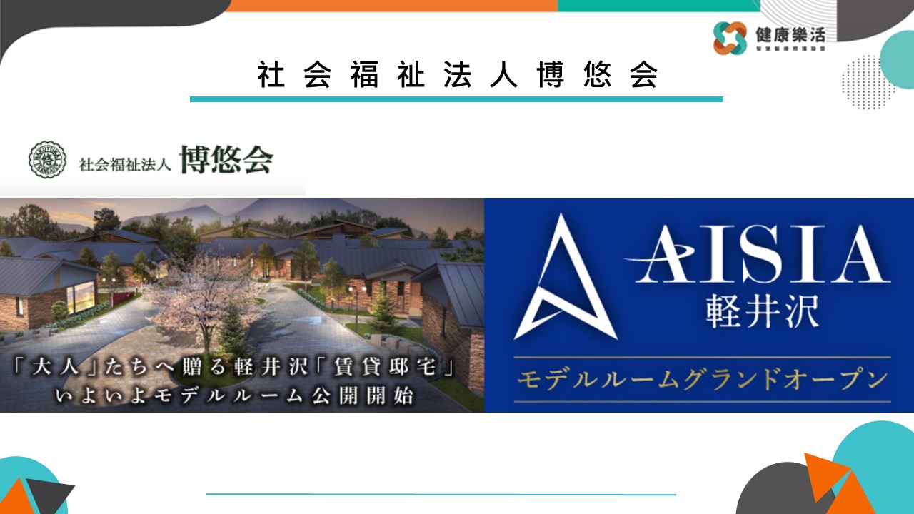 博悠會為提供所有入住長者們滿懷感動的「誠心款待」,作為最重要的經營使命謹記在心。事業內容包含照護機構經營、日間照護服務與居家照顧支援服務等,合計17個事業單位。以日照中心為例,讓入住的長者們能夠自己作主選擇「玩樂」「學習」「飲食」「增進健康」「放鬆」的五大主題下,準備了約50種豐富多樣安居休閒的活動內容。想一直充滿活力生活、想提昇運動機能的長者,由專屬的理療師進行體力測量之後,依照每個人的身體狀況提案最佳的健身項目。健身項目內容主要是以「增進健康」為主軸,備有水中步行浴池和紅繩懸吊式阻抗設備、以及12台肌肉增強健身器材。「學習」的項目內容有麵包教室和個人電腦教室,「玩樂」的活動內容是備有個人卡拉OK房與完善的電動麻將桌。也導入設施內專用貨幣「Smile(微笑)」的制度。只要自己親自勵行活動時,可以賺取「Smile(微笑)」。例如,沿著樓梯往上爬時即可獲得100 Smile,想喝咖啡時就可用200 Smile進行支付的活動模式。