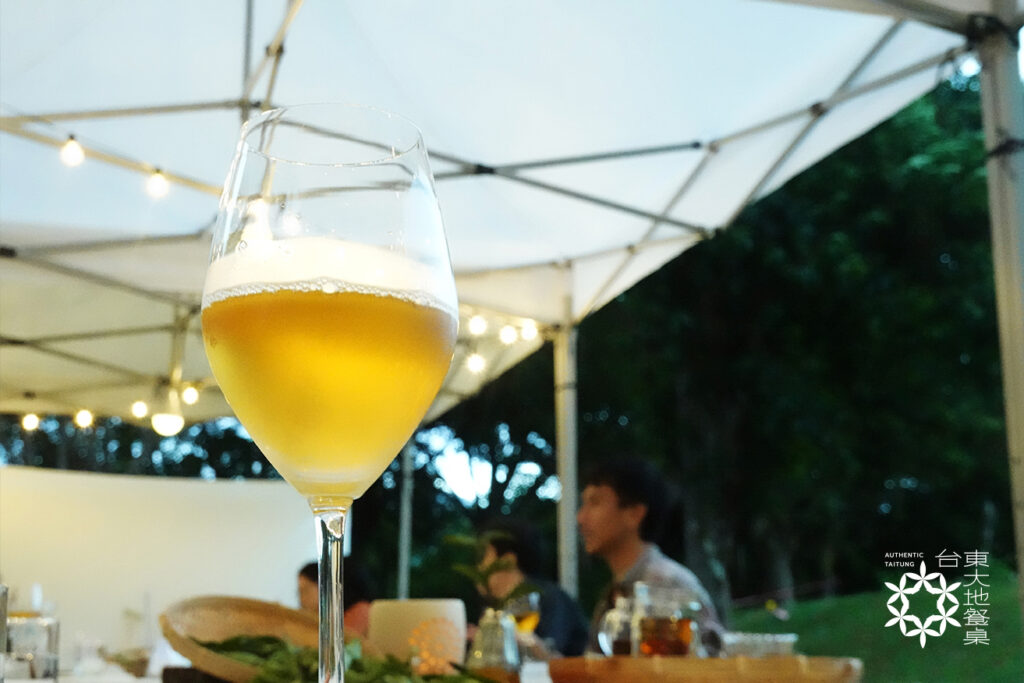 高腳杯斟滿金黃清甜的鹿野在地冷泡金萱茶,為琥珀色的夜晚揭開序幕。