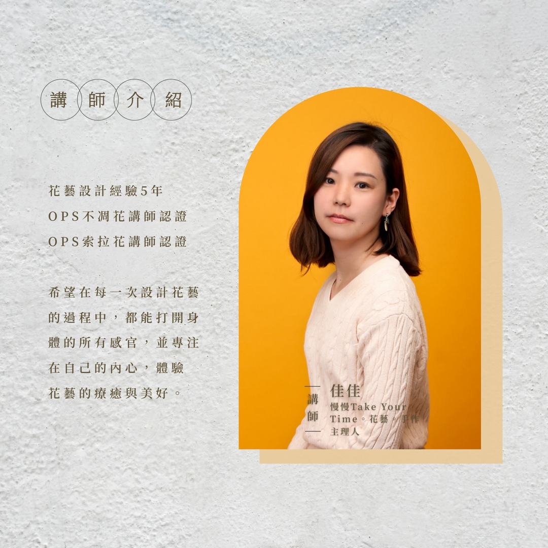 課程講師:佳佳 (慢慢Take Your Time。花藝。手作 - 主理人)