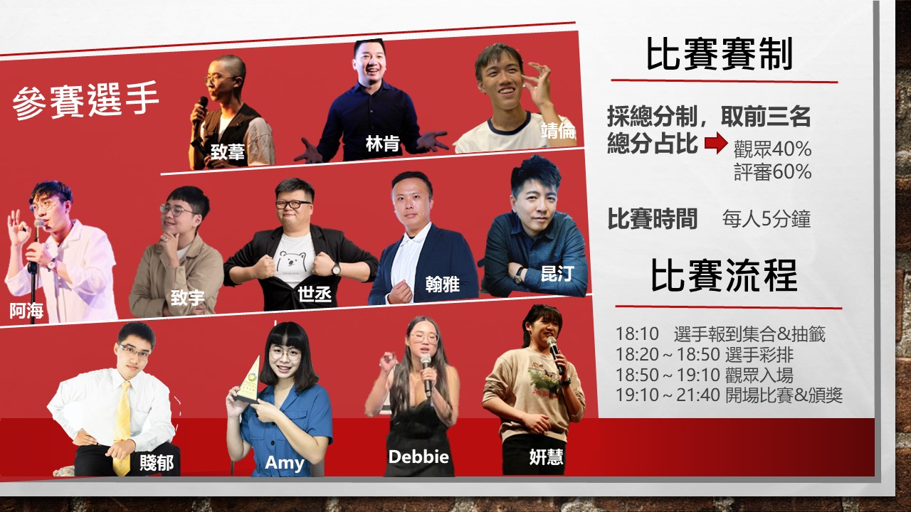 12位來自各方的脫口秀好手,目標是你/妳的笑穴