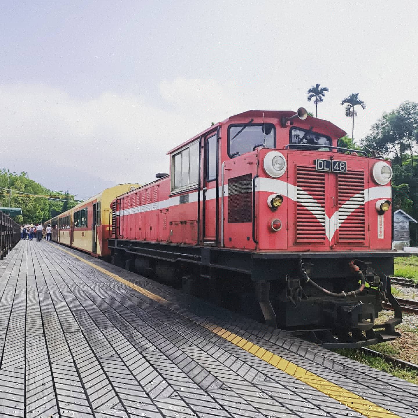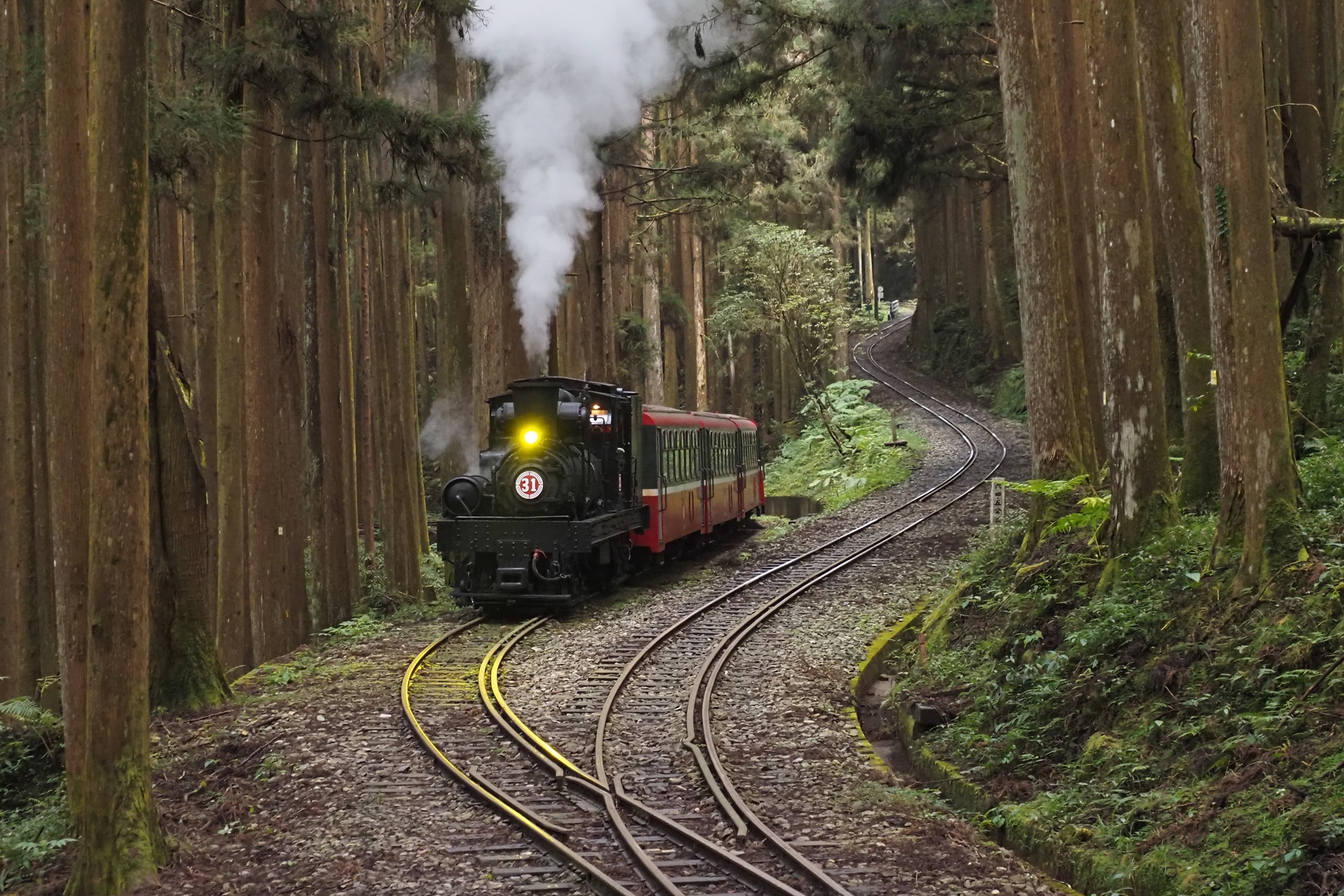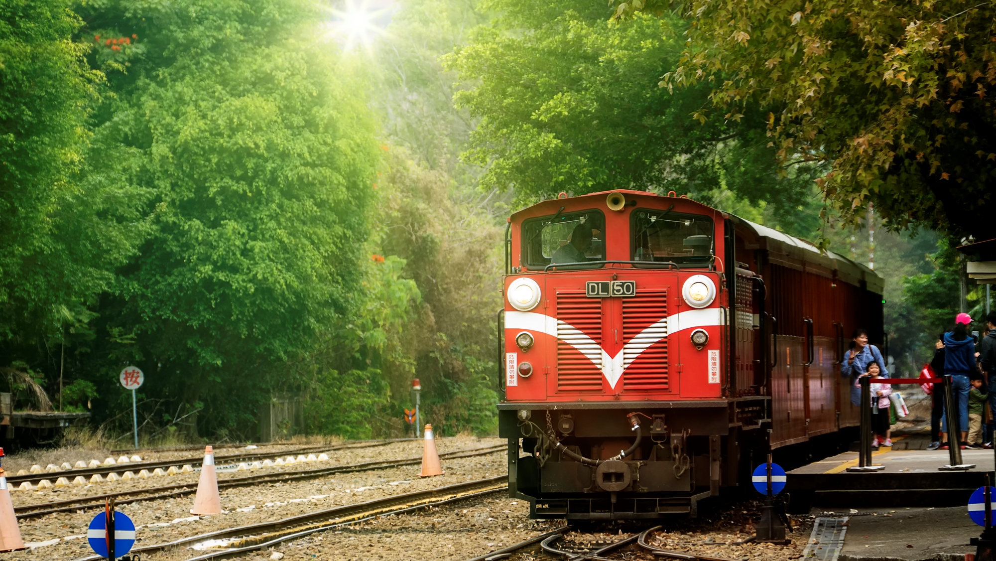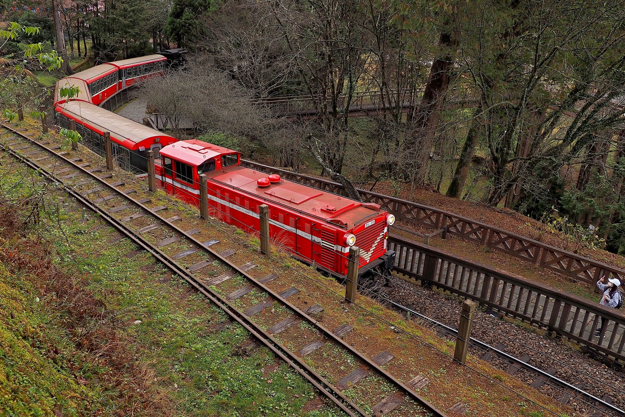 紅色的車身走進森林裡,為阿里山增添色彩。來自日治時期,在功成身退後,改為觀光列車,仍不失以往光彩