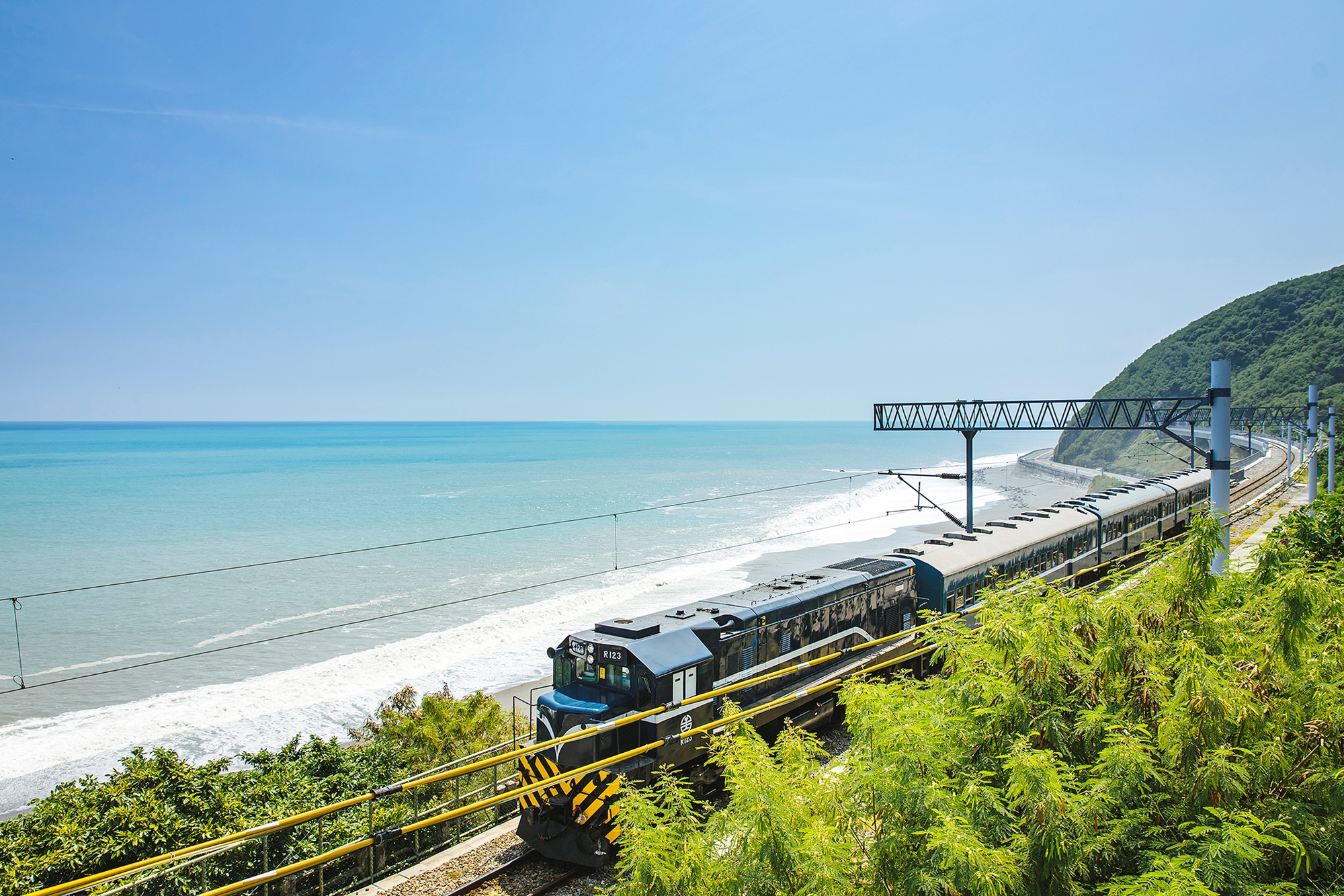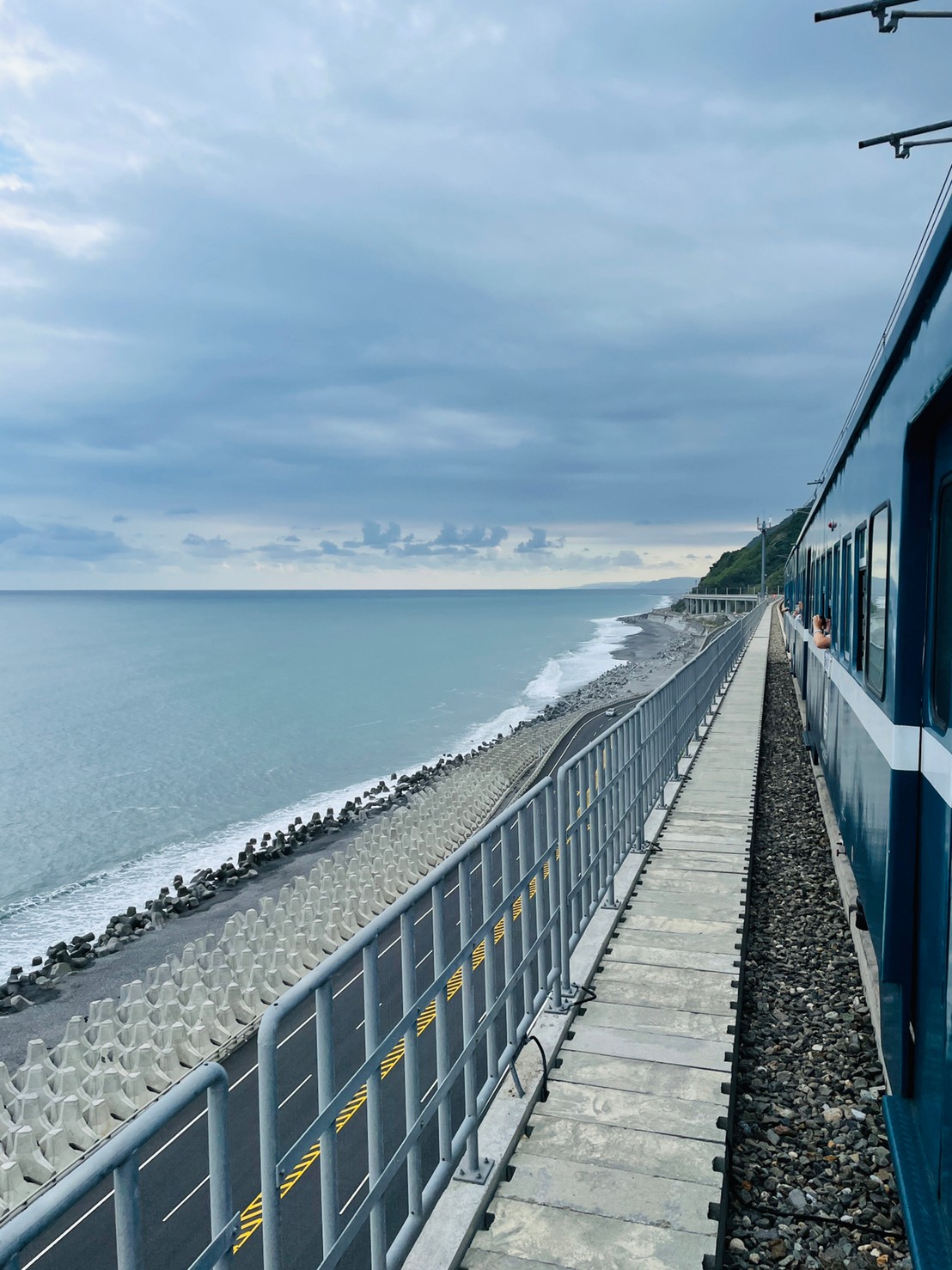 南迴台灣列車,一抹藍色穿梭於山林海岸間,來回在東西兩端,是俗稱的「微笑曲線」