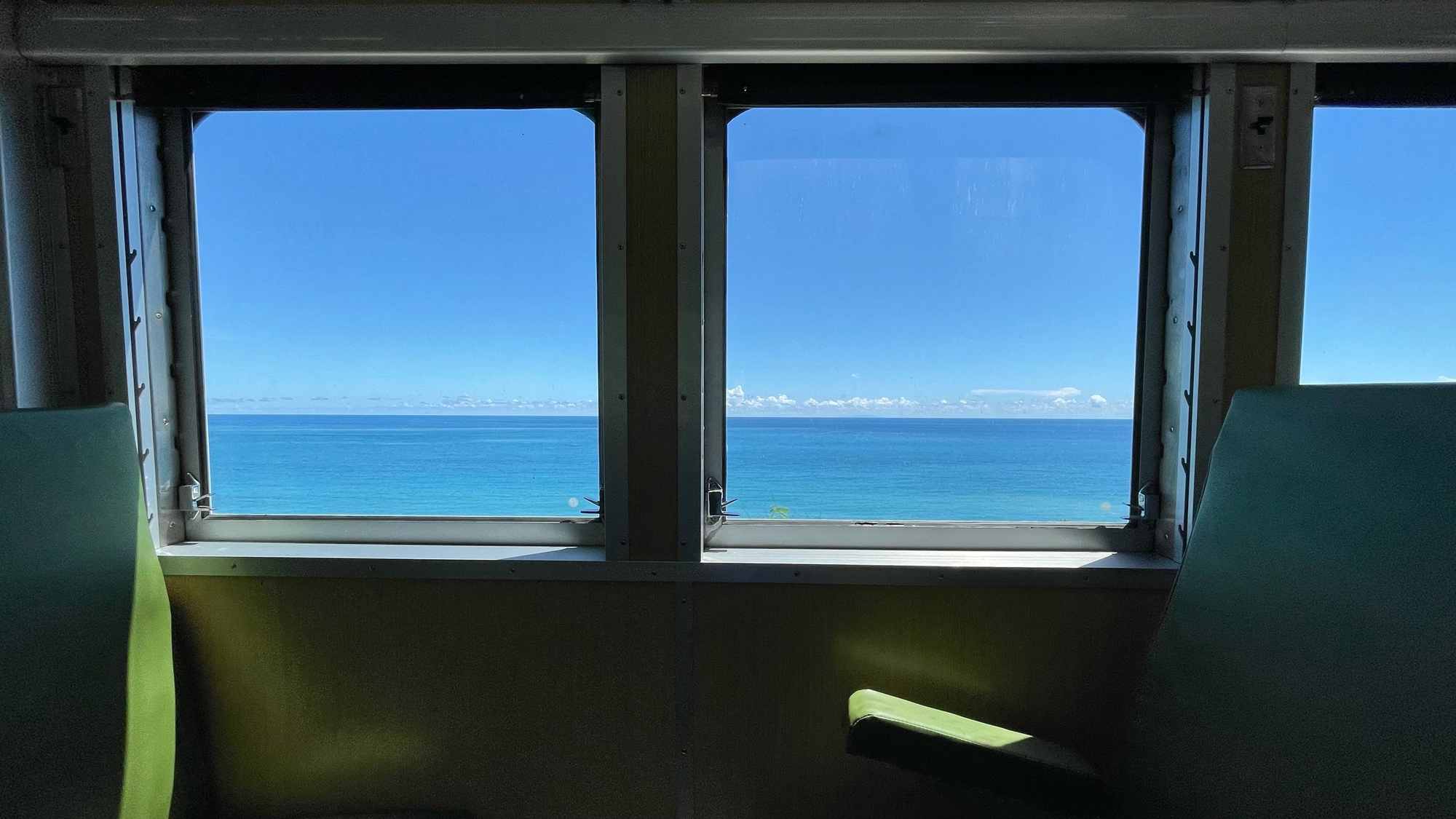 同時也是唯一一台可以打開窗戶,迎著海風穿越玻璃窗帶來絲絲海味,年過半百的解憂號,仍馳騁在天海一色的南迴線上